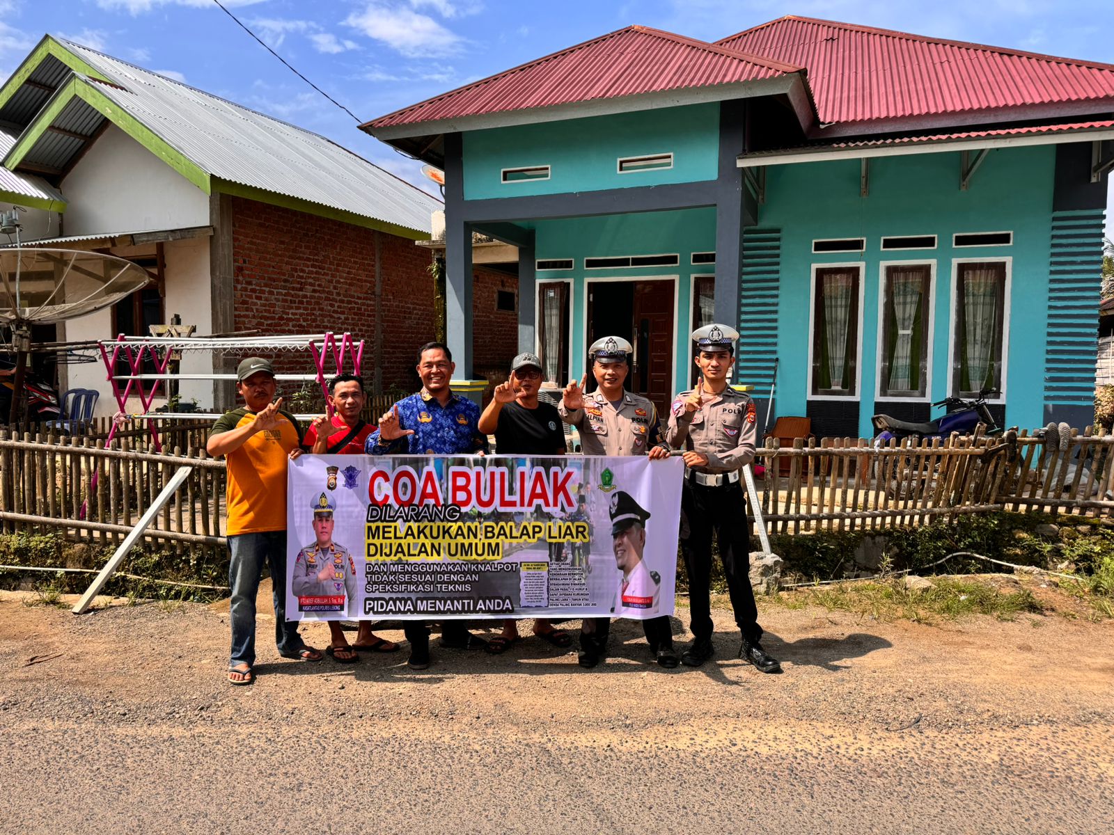 Lebong – Bersama perangkat desa, personel Satlantas Polres Lebong Polda Bengkulu, memberikan imbauan kepada masyarakat tentang larangan melakukan aksi balap liar, dan penggunakan knalpot brong.