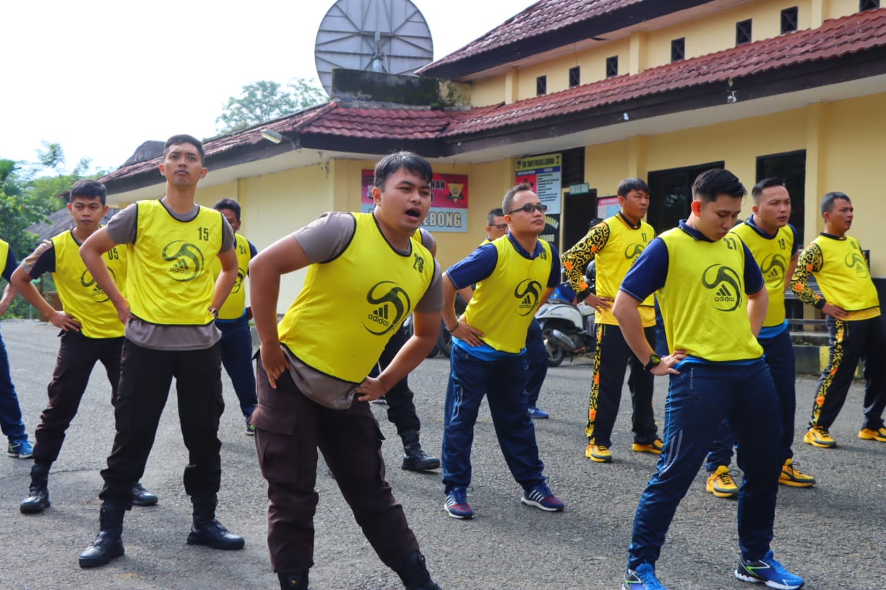 Lebong – Personel Polres Lebong Polda Bengkulu, pada Jumat (17/5/2024) mengikuti kegiatan kesamaptaan jasmani.