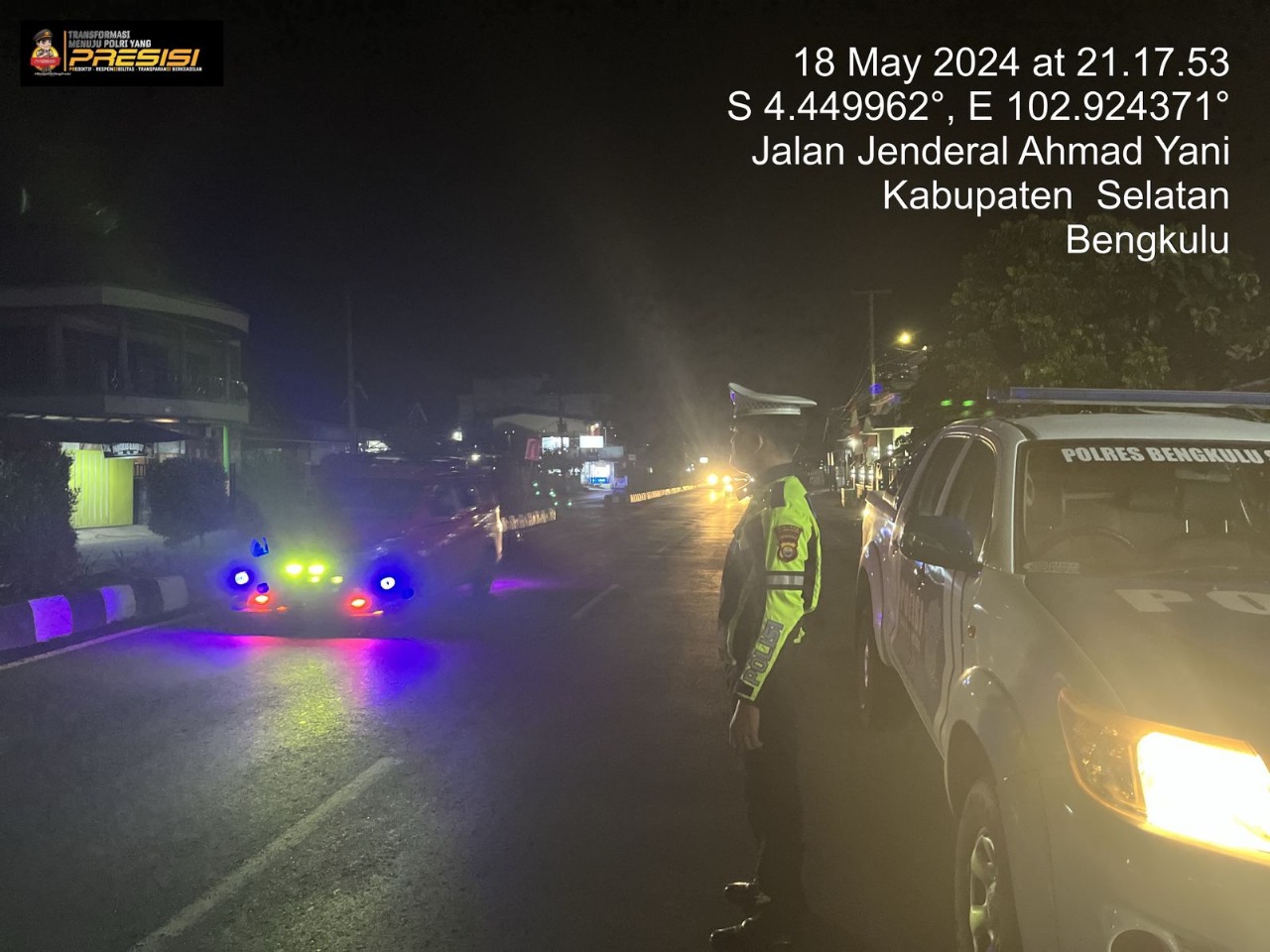 Bengkulu Selatan – Patroli dilaksanakan pukul 19.00 Wib s/d oleh Kanit Laka Aipda Sutiono, S.H., dan personel Sat Lantas Briptu Rama serta Briptu Eduar selaku Banit Turjawali, melaksanakan Patroli Bluelight di wilayah hukum Seputaran Kota Manna Bengkulu Selatan, pada Minggu (19/05/24) malam.
