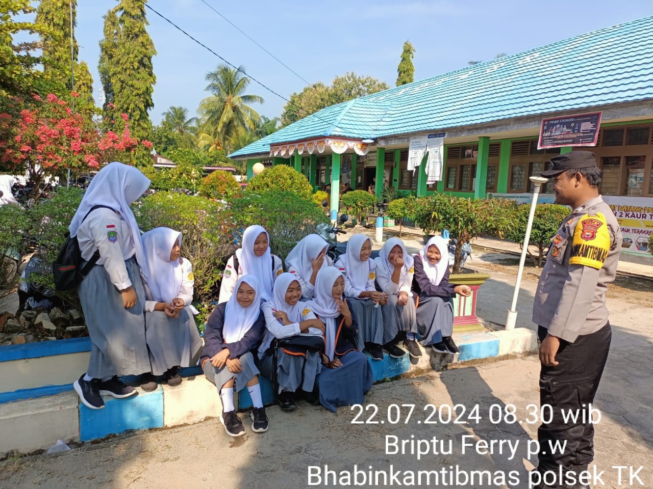 Dalam giat Goes To School, Bhabinkamtibmas Polsek Tanjung Kemuning Briptu Ferry P.W menyampaikan imbauan dan pesan Kamtibmas kepada guru dan pelajar dalam rangka menciptakan keamanan dan ketertiban di lingkungan sekolah.