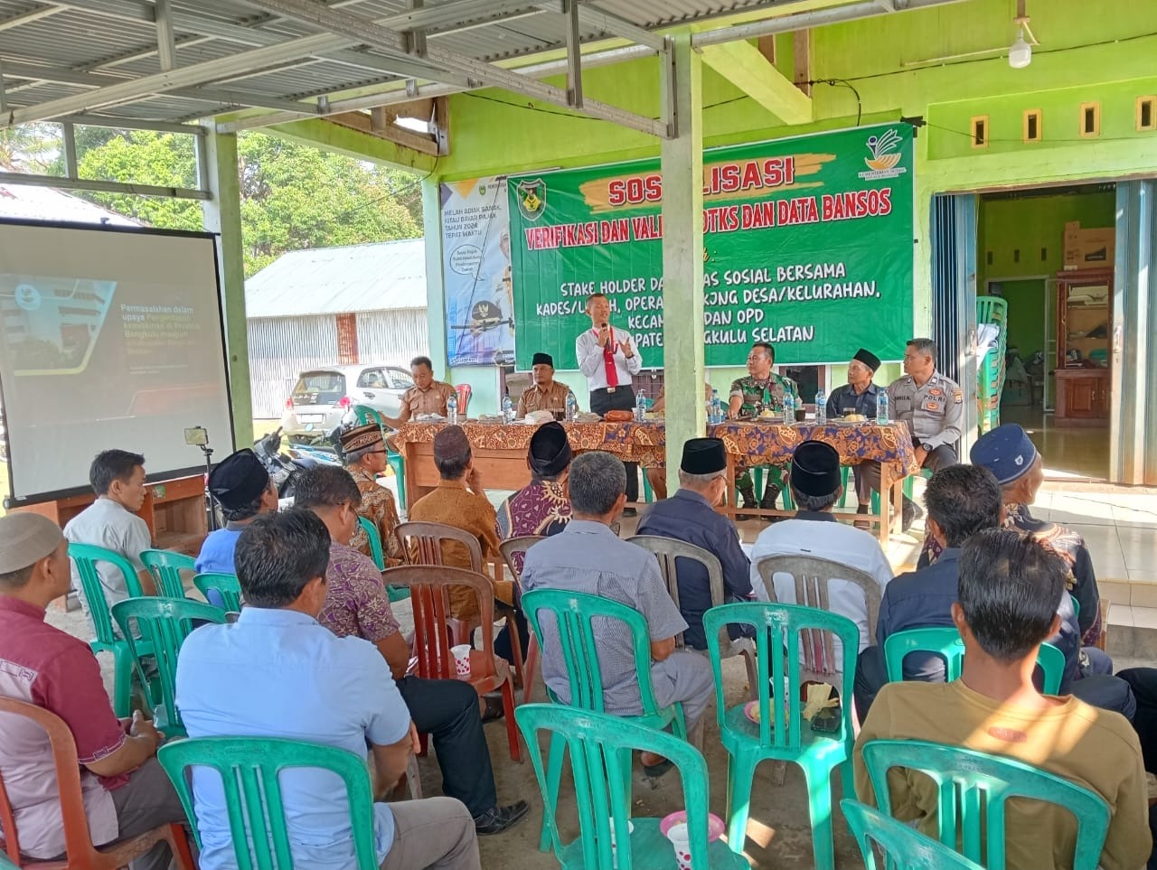 Bengkulu Selatan – Kanit Binmas Polsek Manna mewakili Kapolsek Manna Polres Bengkulu Selatan Polda Bengkulu , Aiptu Amrizal Menghadiri Kegiatan Verifikasi dan Validasi DTKS dan data Bansos dari kepala dinas Sosial di Desa Jeranglah Rendah Kecamatan Manna kabupaten Bengkulu Selatan, sembari Jalin Silaturahmi yang solid, Selasa (30/07/24).
