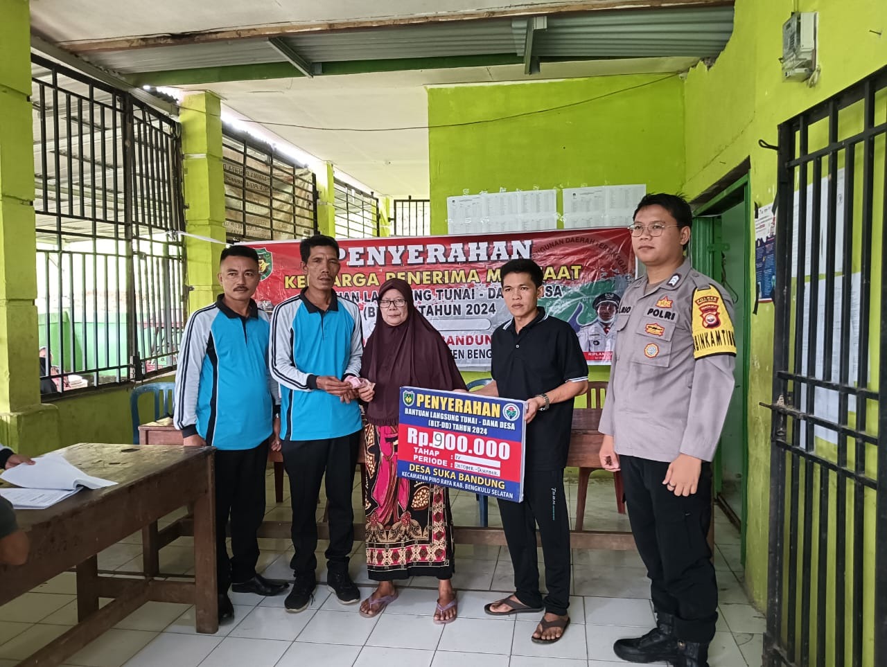 Bengkulu Selatan – Polsek Pino Raya, melalui Bhabinkamtibmas Brigadir Hendrik Rio, SH, menghadiri kegiatan penyaluran Bantuan Langsung Tunai Dana Desa (BLT-DD) tahap 10 di Desa Suka Bandung, Kecamatan Pino Raya, Kabupaten Bengkulu Selatan, pada Jumat, 11 Oktober 2024.