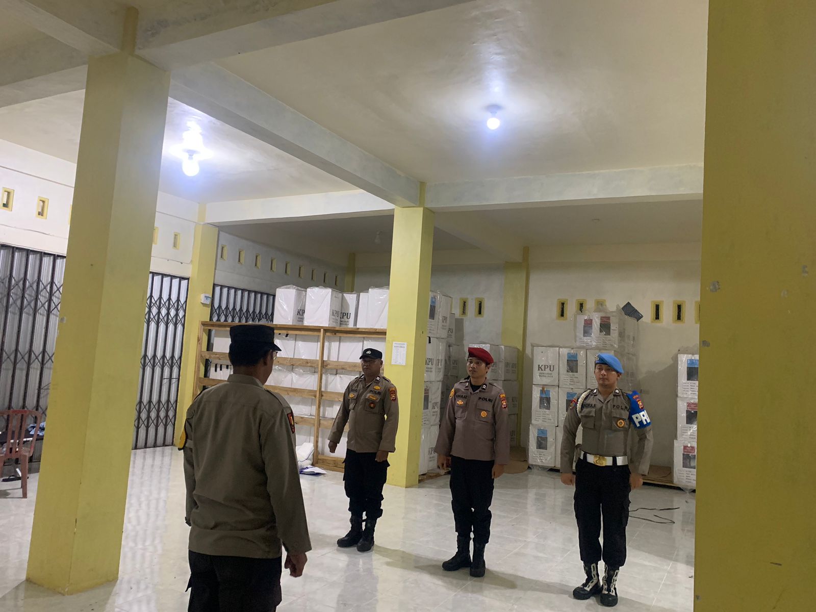 Mereka bekerja sama dengan empat petugas piket dari KPU Bengkulu Selatan untuk menjaga keamanan logistik pemilu.