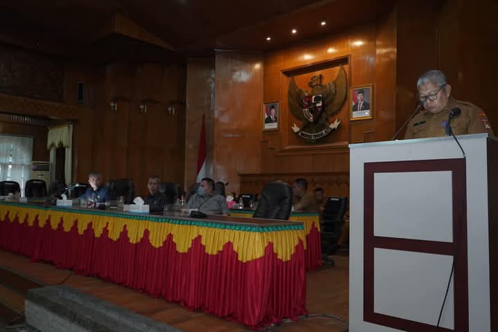 Asahan tintabngsa.com – Ketua DPRD Kabupaten Asahan H.Efi Irwansyah Pane, M.K.M memimpin Rapat Paripurna DPRD Kabupaten Asahan Masa Persidangan ke-I Tahun Anggaran 2025 dalam acara Pengumuman Usulan Penetapan Pemberhentian Bupati Asahan dan Wakil Bupati Asahan Hasil Pilkada Serentak Tahun 2020 di Aula Rambate Rata Raya Sekretariat DPRD Kabupaten Asahan, Senin (06/01/2025).
