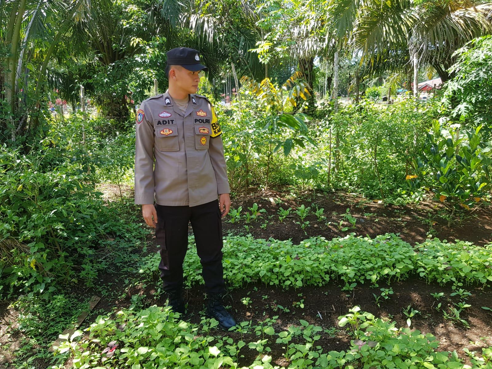 Pada kesempatan tersebut Briptu Meltra bersinergi dengan masyarakat Kel. Sukaraja melihat tanaman yang ditanam warga di areal pekarangan rumahnya. Pada kesempatan tersebut melaksanakan perawatan lahan yang ada di sekitar rumah mereka sebagai upaya mendukung swasembada pangan lokal. Seperti penanaman sayuran di pekarangan rumah diharapkan dapat membantu masyarakat memenuhi kebutuhan pangan sehari-hari.