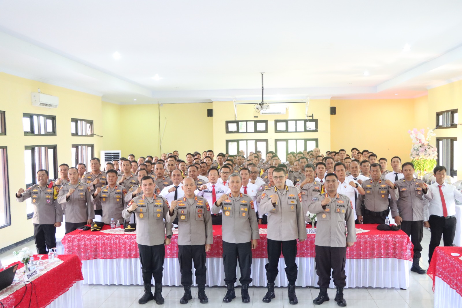 Kegiatan di lanjutkan di Aula Endra Dharmalaksana dan Kapolres Seluma melaksanakan Laporan Kesatuan lalu Kapolda Bengkulu memberikan Arahan internal Kapolda Bengkulu kepada personel Polres Seluma.