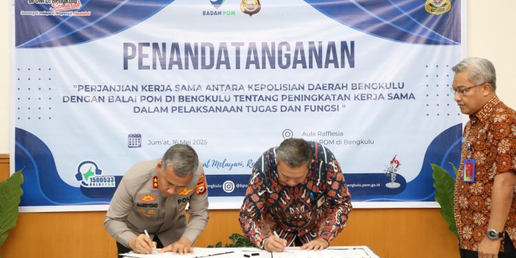 Penandatanganan ini merupakan langkah strategis dalam memperkuat sinergi antara aparat penegak hukum dan lembaga pengawas untuk meningkatkan pengawasan terhadap peredaran obat dan makanan di wilayah Provinsi Bengkulu.