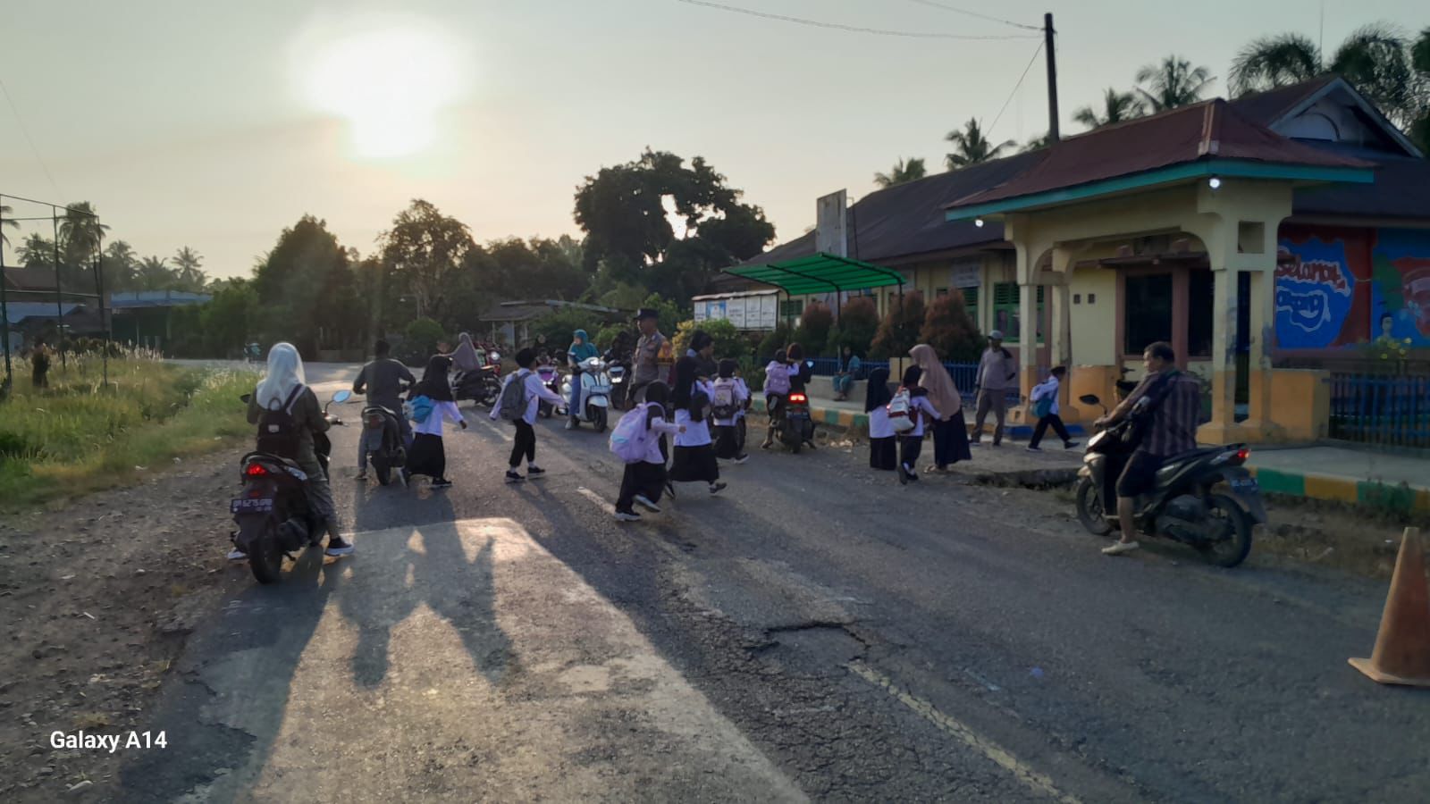 Polsek Lubuk Pinang Bantu Penyeberangan Anak Sekolah Di Pagi Hari