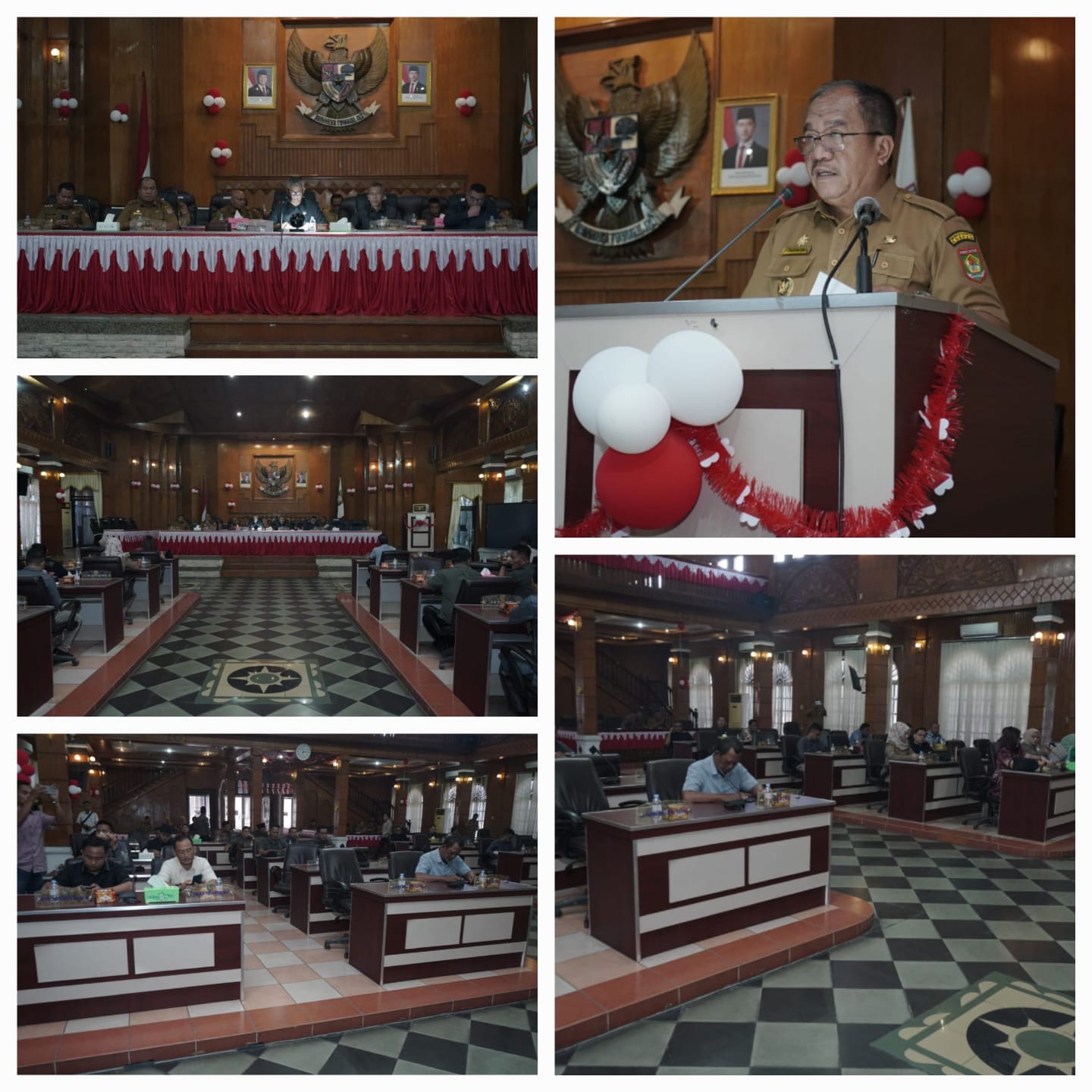 Bupati Asahan, Taufik Zainal Abidin, S.Sos., M.Si., menyampaikan Nota Keuangan Rancangan Peraturan Daerah (Ranperda) tentang Perubahan APBD Kabupaten Asahan Tahun Anggaran 2025 pada Rapat Paripurna DPRD Kabupaten Asahan di Aula Rambate Rata Raya, Senin (08/09/2025). Rapat dipimpin langsung oleh Ketua DPRD Kabupaten Asahan, H. Efi Irwansyah Pane, M.K.M., serta dihadiri Wakil Bupati, para Anggota DPRD, Sekretaris Daerah, pimpinan OPD, dan tamu undangan lainnya.