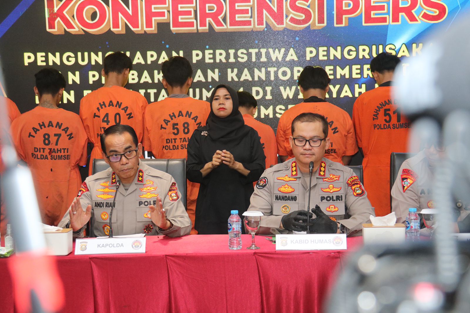 Kapolda Sumsel, Irjen Pol Andi Rian R Djajadi, S.I.K., M.H., menjelaskan bahwa kerusuhan terjadi pada Minggu (31/8/2025) dini hari, dipicu provokasi melalui media sosial. “Peristiwa perusakan dan pembakaran terjadi sekitar pukul 02.30 WIB. Command Center Polda Sumsel memantau pergerakan konvoi sekitar 500 sepeda motor di depan Kantor DPRD Provinsi Sumsel,” ujarnya saat konferensi pers di Lounge Ampera, lantai 7 Mapolda Sumsel, Kamis (18/9/2025).