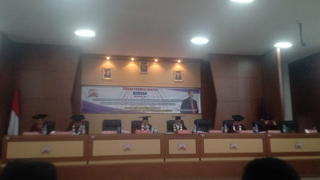 Disertasi yang dipertahankan oleh Hamdan berjudul “Eksistensi dan Dinamika Tari Gandai dalam Membentuk Akhlak, Toleransi, dan Solidaritas Masyarakat Suku Pekal Kabupaten Bengkulu Utara.” Dalam paparannya, Hamdan menjelaskan bagaimana konsep *Tari Gandai—yang terdiri dari *Gandai Akal, Gandai Hati, dan Gandai Raga—bukan sekadar filosofi usang, melainkan pilar hidup yang masih relevan dan efektif dalam membentuk karakter masyarakat Suku Pekal. Ia menekankan bahwa melalui praktik Tari Gandai, nilai-nilai luhur seperti kejujuran, saling menghargai, dan gotong royong terinternalisasi secara turun-temurun.
