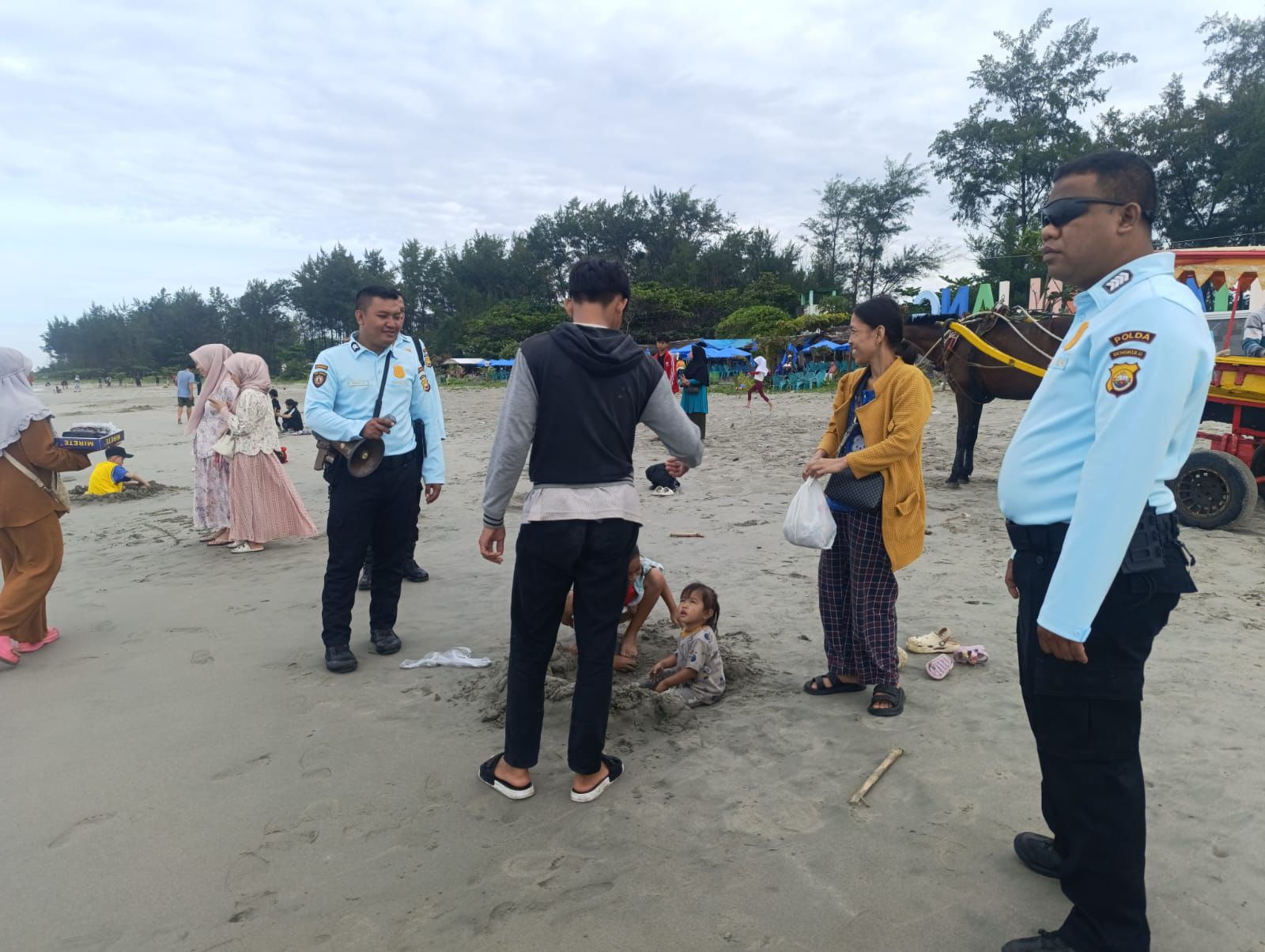 Personel Subdit Wisata Ditpamobvit Polda Bengkulu juga memberikan himbauan kepada pengunjung untuk selalu mematuhi aturan-aturan yang berlaku di pantai, seperti tidak membuang sampah sembarangan dan tidak melakukan kegiatan yang dapat mengganggu ketertiban umum.