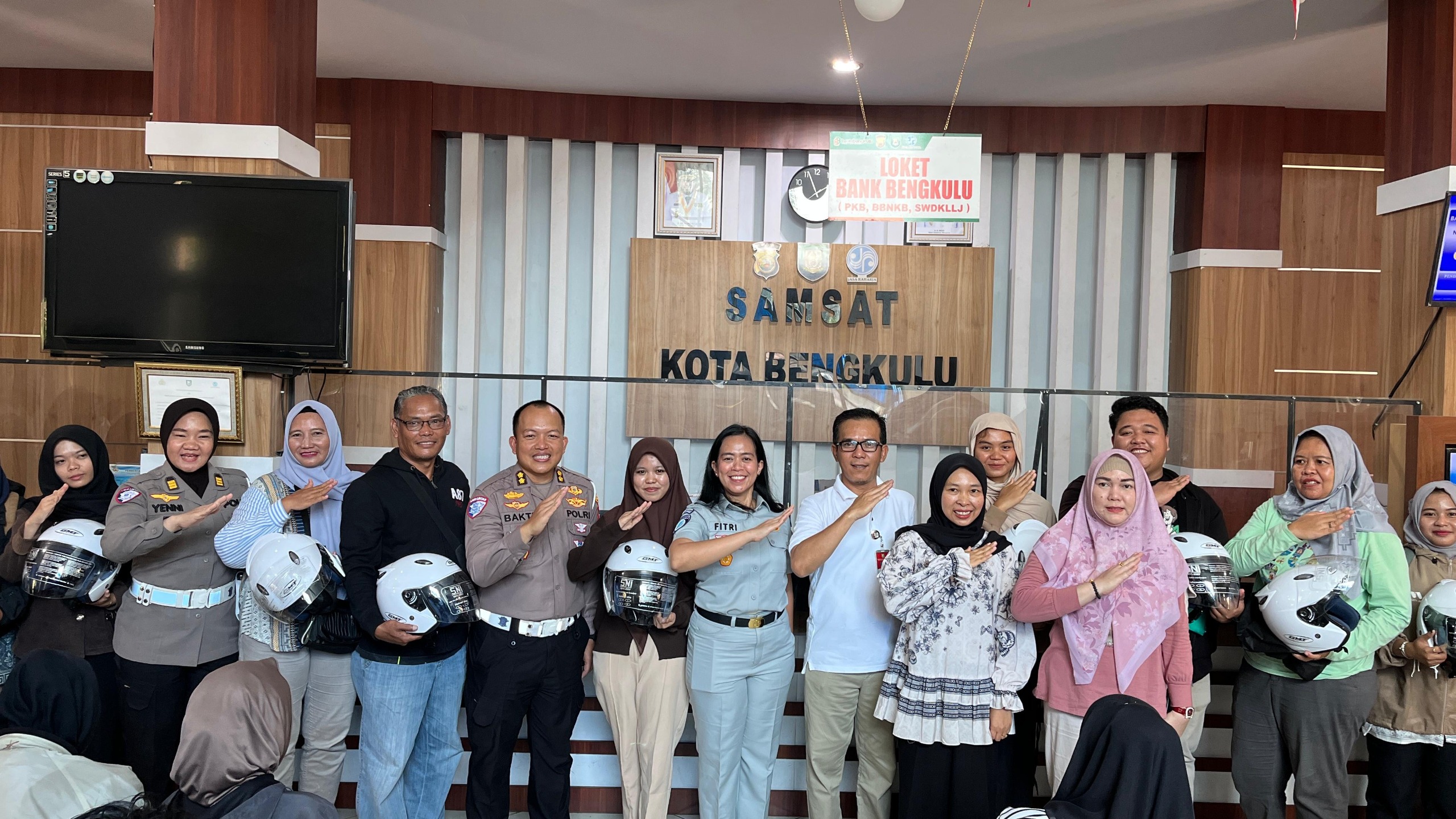 Bengkulu – PT Jasa Raharja Kantor Wilayah Bengkulu menggelar agenda doa bersama sekaligus pembagian helm kepada masyarakat di Samsat Kota Bengkulu, Jumat (19/9/2025). Kegiatan ini menjadi bagian dari upaya bersama untuk menumbuhkan kesadaran akan pentingnya keselamatan dalam berlalu lintas.