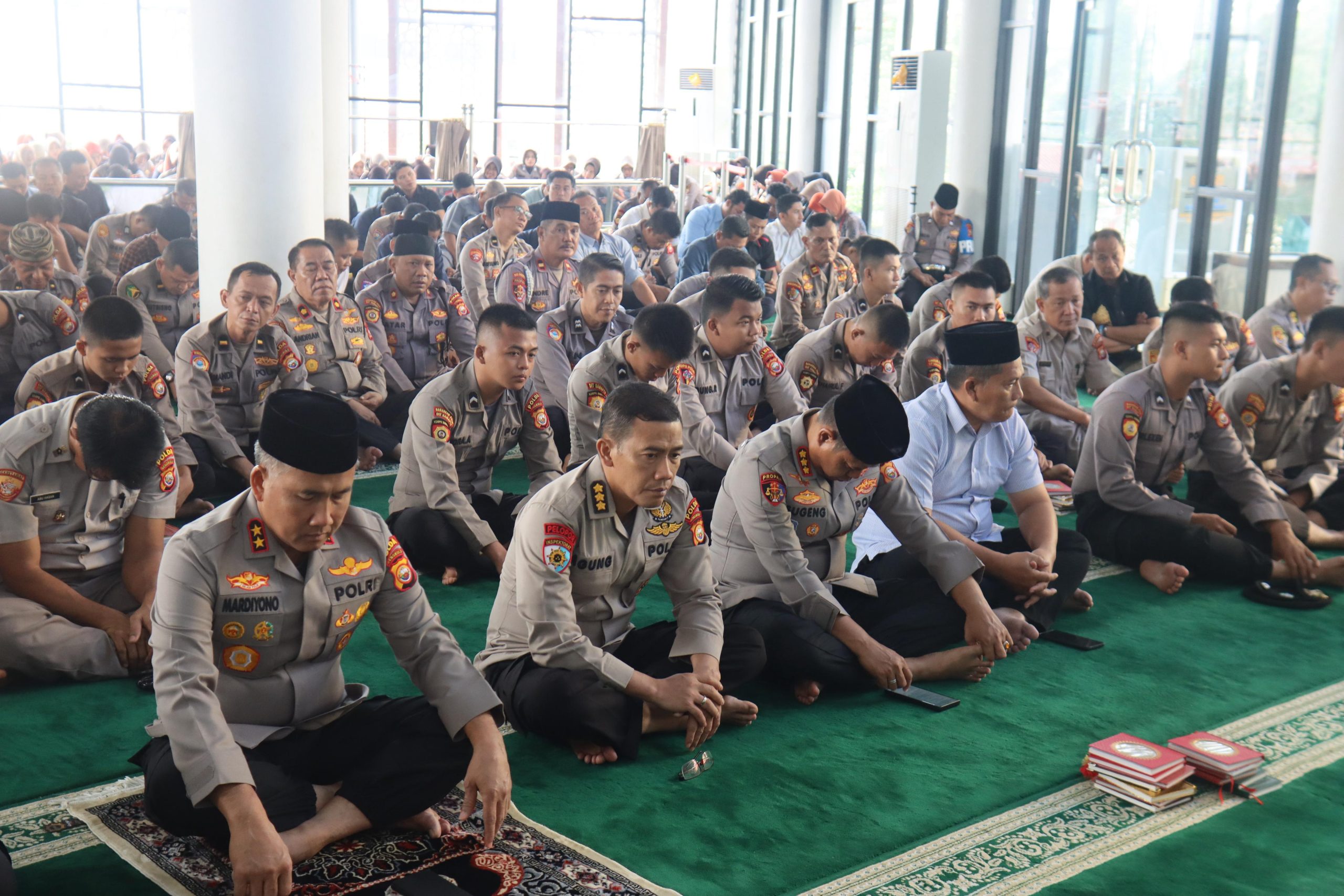 BENGKULU – Polda Bengkulu menyelenggarakan kegiatan Bimbingan Rohani dan Mental (Binrohtal) lintas agama secara virtual melalui zoom meeting pada Kamis (25/09/2025), bertempat di Masjid Al-Amin Polda Bengkulu. Acara ini diikuti langsung oleh Kapolda Bengkulu Irjen Pol. Mardiyono, S.I.K., M.Si., Wakapolda Brigjen Pol. Dicky Sondani, Plt. Irwasda Kombes Pol. Agung Kurniawan, para pejabat utama, serta seluruh personel Polda Bengkulu.