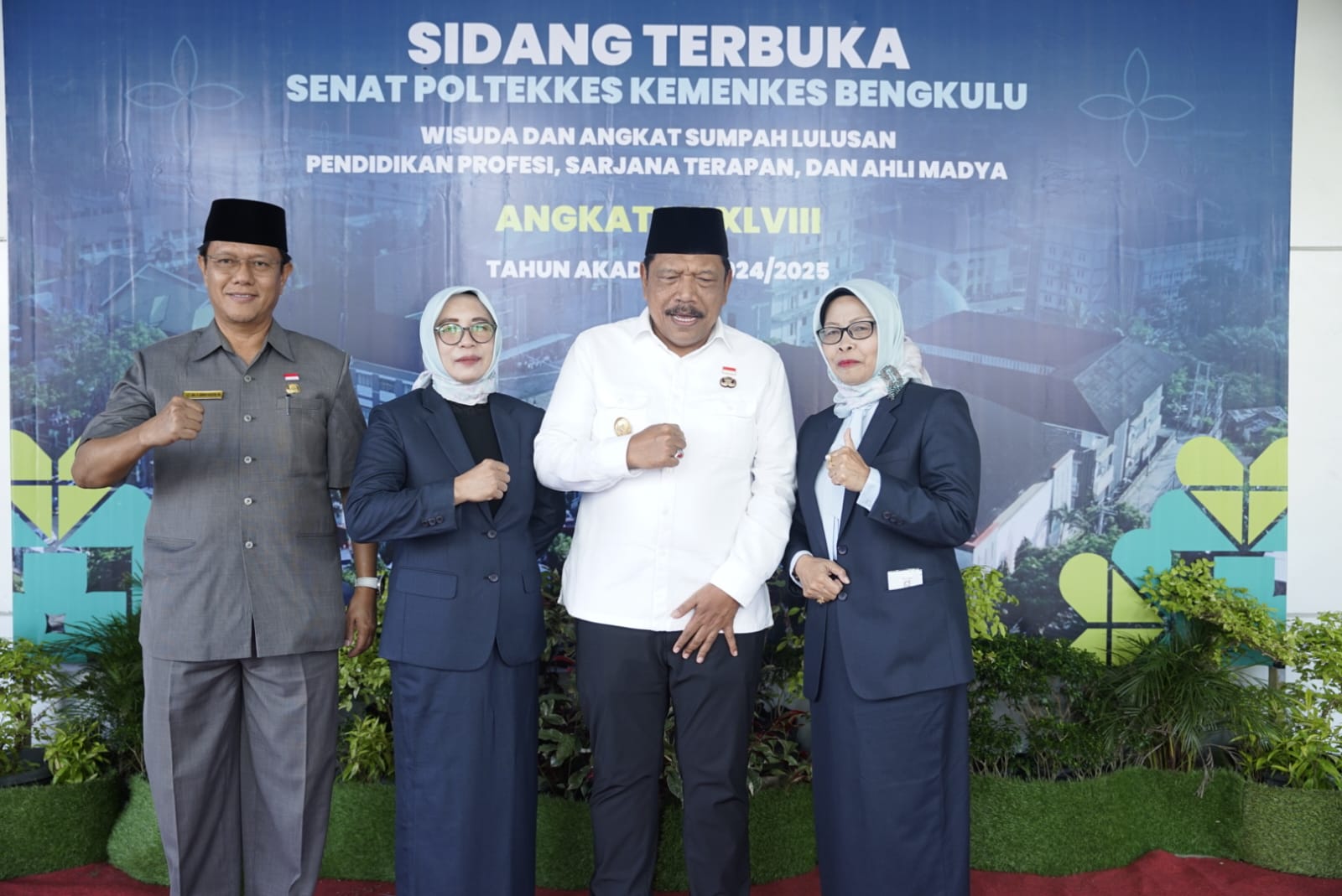 Wakil Gubernur Bengkulu, Mian, yang hadir mewakili Gubernur Helmi Hasan, mengapresiasi kiprah Poltekkes dalam mencetak tenaga kesehatan berkualitas. Menurutnya, kontribusi para lulusan sangat besar dalam memperkuat layanan kesehatan, baik di desa, kecamatan, kabupaten, maupun di luar negeri.