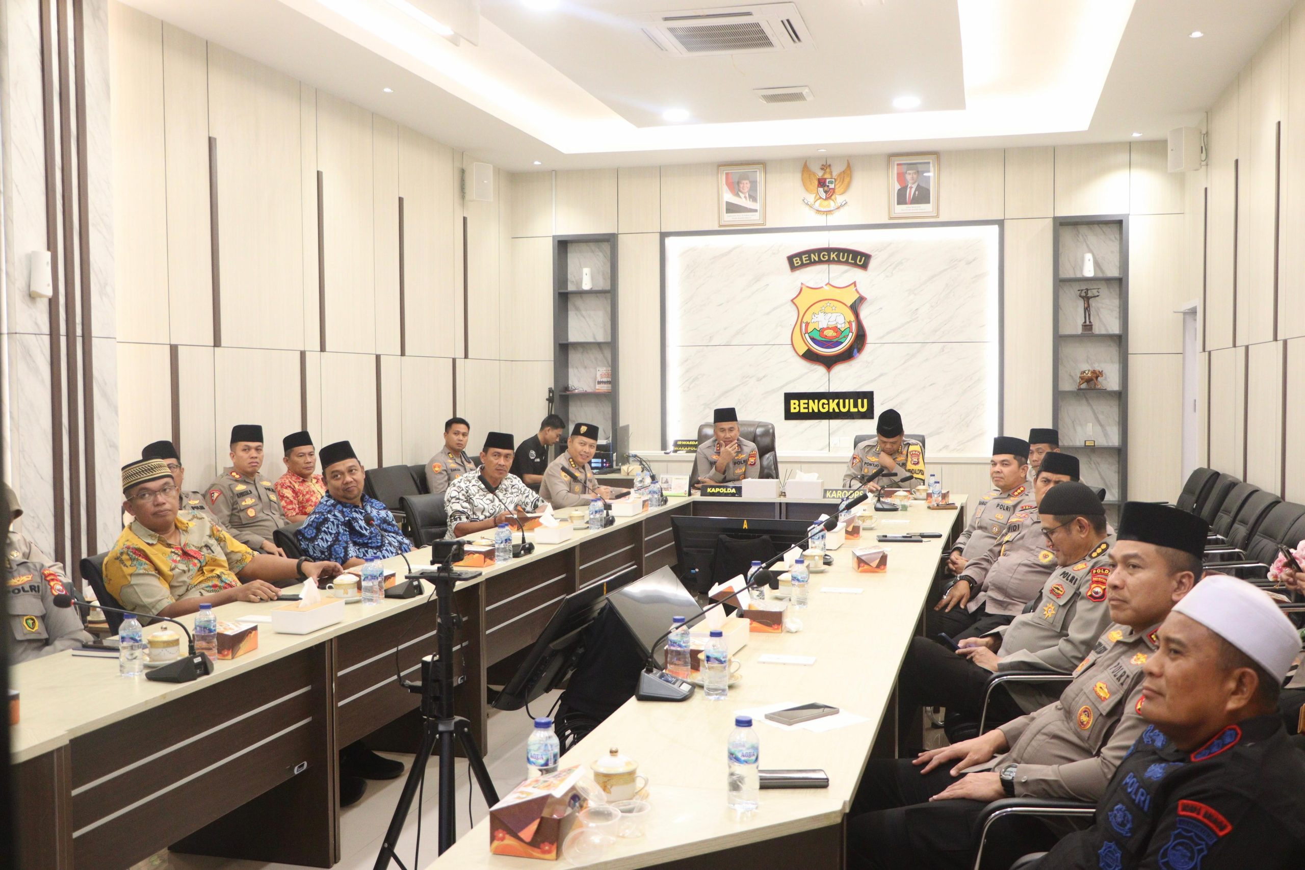 BENGKULU – Polda Bengkulu melaksanakan kegiatan Pembinaan Rohani dan Mental Pegawai Negeri pada Polri (PNPP) melalui Zoom Meeting yang menghadirkan penceramah kondang, Ustaz Prof. K.H. Abdul Somad, Lc., D.E.S.A., Ph.D., pada Jumat (26/09/2025) pukul 13.00 WIB. Acara ini dipimpin langsung oleh Kapolri Jenderal Polisi Drs. Listyo Sigit Prabowo, M.Si., dan diikuti oleh Kapolda Bengkulu Irjen Pol. Mardiyono, S.I.K., M.Si. beserta Pejabat Utama Polda Bengkulu dari ruang rapat Kapolda.