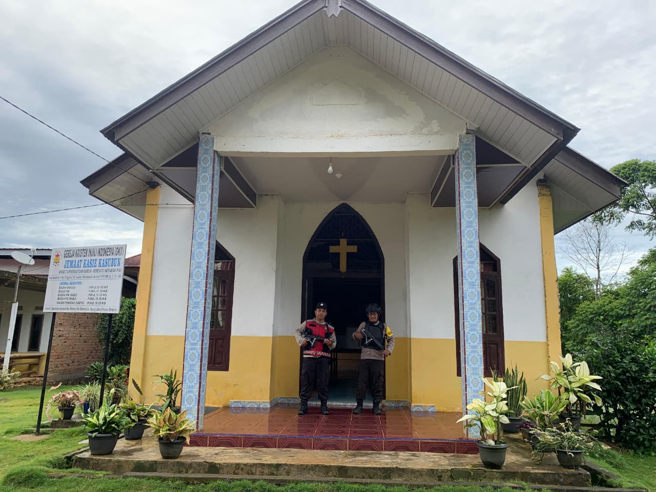 Kapolsek PU. Tanding AKP Mansyur Daud Manalu, S.H. Bersama Personil Polsek PU. Tanding Melaksanakan Kegiatan Pengamanan Ibadah Gereja GKII Desa kasie KASUBUN Kec. Padang Ulak Tanding pada hari Minggu (28/09/2025).