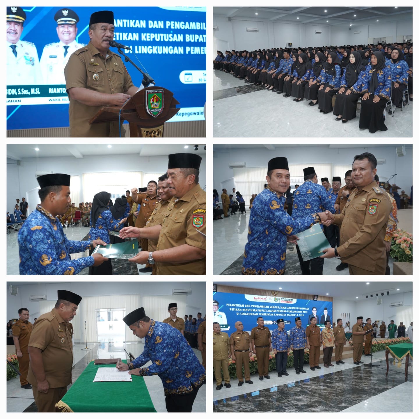 Asahan, tintabangsa.com- Bupati Asahan, Taufik Zainal Abidin, S.Sos., M.Si secara resmi mengukuhkan sekaligus mengambil sumpah/janji 495 Pegawai Pemerintah dengan Perjanjian Kerja (PPPK) Formasi Tahun Anggaran 2024 di Aula Melati Kantor Bupati Asahan. Acara ini dihadiri Wakil Bupati, Kepala Kanreg VI BKN Medan, Sekretaris Daerah, para Asisten, Kepala Perangkat Daerah, Camat, pimpinan PT Taspen Cabang Medan, PT Bank Sumut Kisaran, serta Ketua Dewan Pengurus KORPRI Kabupaten Asahan.