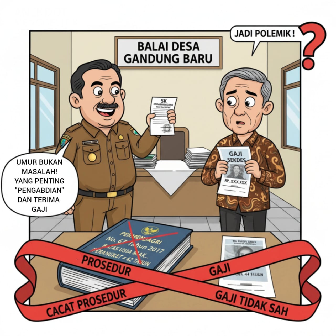 Mengapa pertanyaan ini penting? Karena pengangkatan Maghripa sebagai Sekdes sejak awal diduga cacat prosedur. Ia diketahui berusia 44 tahun, sementara Permendagri Nomor 67 Tahun 2017 dengan tegas menetapkan bahwa usia maksimal calon perangkat desa adalah 42 tahun. Artinya, sejak proses penjaringan dan pengangkatan, jabatan tersebut telah melanggar aturan hukum positif.