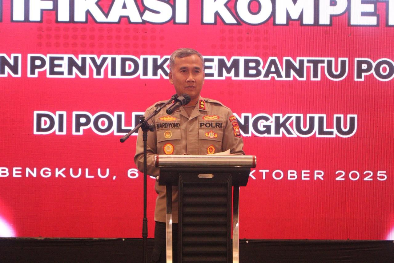 Dalam sambutannya, Kapolda Bengkulu Irjen Pol. Mardiyono menegaskan bahwa kegiatan sertifikasi merupakan langkah penting dalam meningkatkan profesionalisme dan kompetensi para penyidik serta penyidik pembantu Polri.