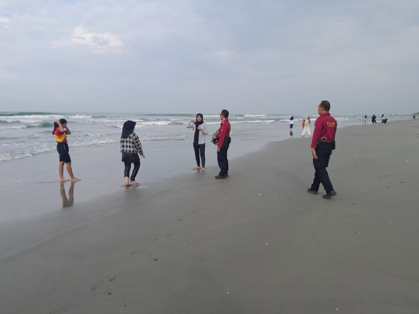 Petugas juga melaksanakan patroli di sekitaran Pantai Panjang dan Pasir Putih untuk mengantisipasi gangguan kamtibmas dan memberikan rasa aman dengan kehadiran polisi di tengah-tengah masyarakat. Selain itu, petugas juga memberikan pesan-pesan kamtibmas kepada masyarakat agar selalu mengawasi anaknya untuk tidak mandi di pinggir pantai guna terhindar dari hal-hal yang tidak diinginkan.