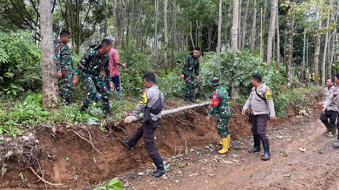 Kali ini, personel TNI, Polri, dan masyarakat bersama-sama melakukan pembersihan serta penebangan ranting pohon di sepanjang badan jalan yang baru dibuka. Selasa (14/10/25).