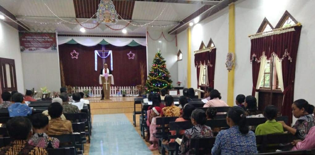 Padang Ulak Tanding – Polsek PU. Tanding Polres Rejang Lebong Polda Bengkulu Melaksanakan Kegiatan Pengamanan Ibadah Gereja GKII Kasie kasubun