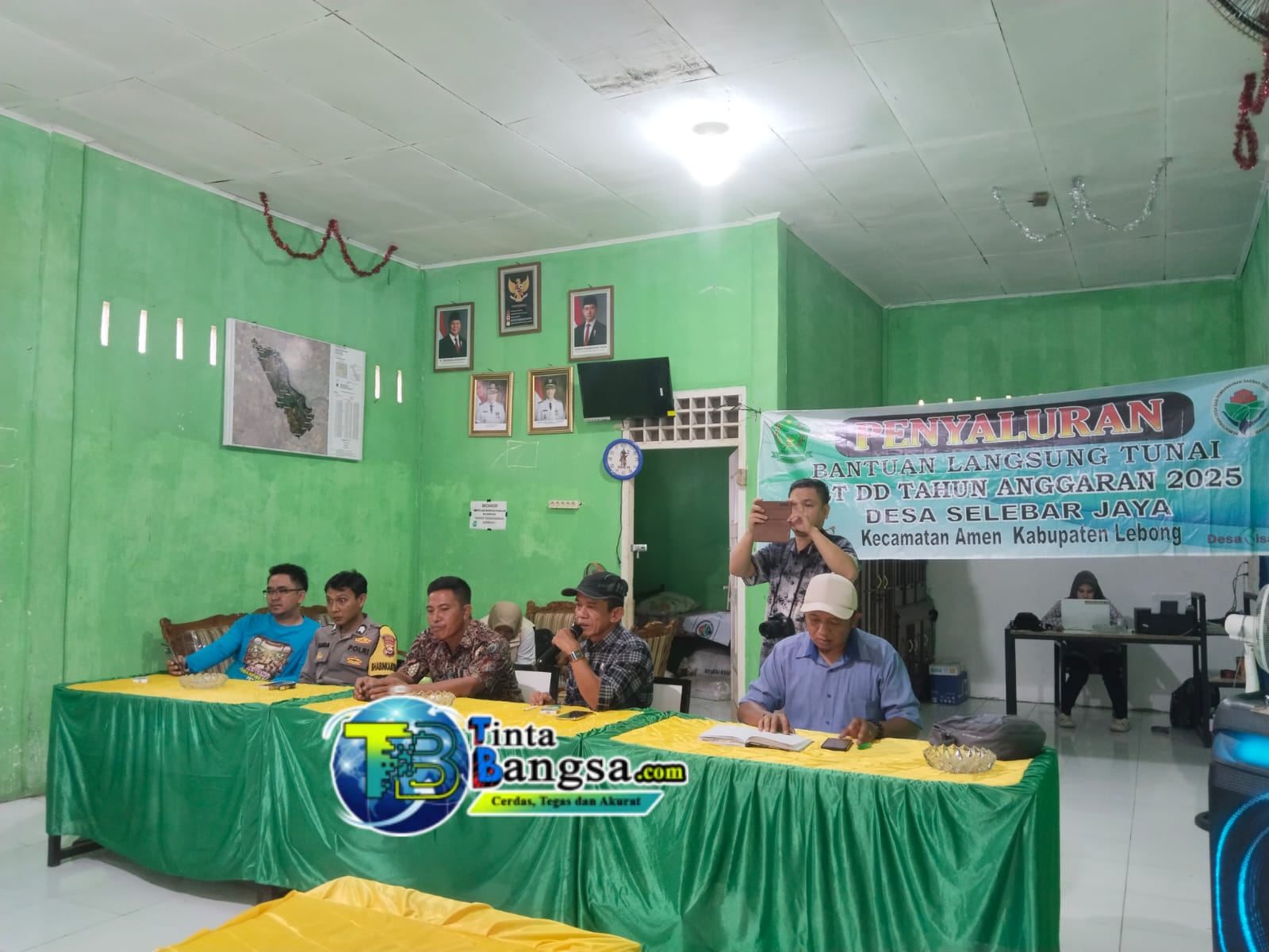 Lebong, tintabangsa.com – Pemerintah Desa Selebar Jaya, Kecamatan Amen, Kabupaten Lebong, pada Kamis (6/11/2025) menyalurkan Bantuan Langsung Tunai Dana Desa (BLT-DD) untuk bulan September dan Oktober Tahun Anggaran 2025 kepada masyarakat penerima manfaat. Kegiatan berlangsung di Balai Desa Selebar Jaya dengan suasana tertib, lancar, dan penuh antusiasme dari warga.
