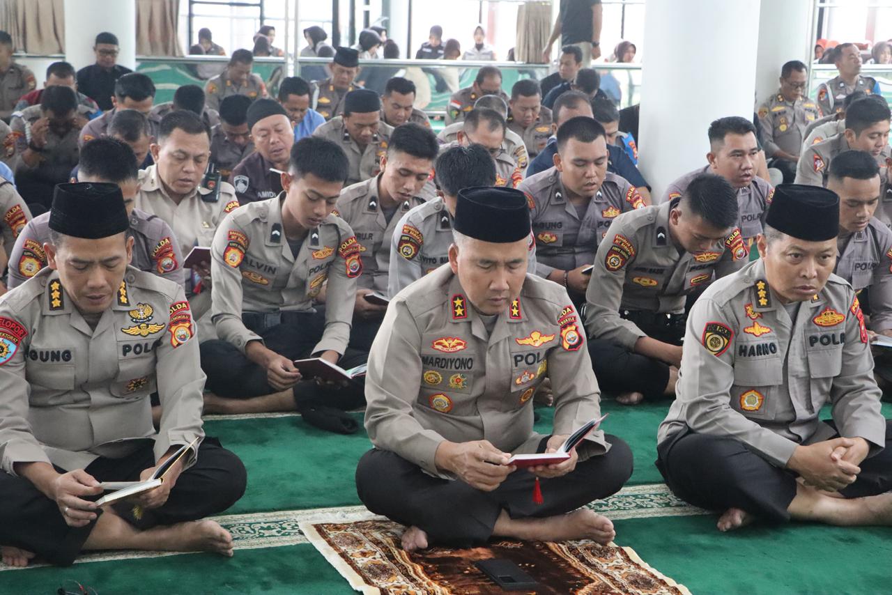 BENGKULU – Polda Bengkulu kembali menggelar kegiatan Bimbingan Rohani dan Mental (Binrohtal) pada Kamis di Masjid Al-Amin Polda Bengkulu. Kegiatan ini dipimpin oleh Kapolda Bengkulu, Irjen Pol Mardiyono, S.I.K., M.Si.,, bersama Pejabat Utama Polda Bengkulu dan seluruh personel Polda Bengkulu. Pada hari Kamis (06/11/2025).