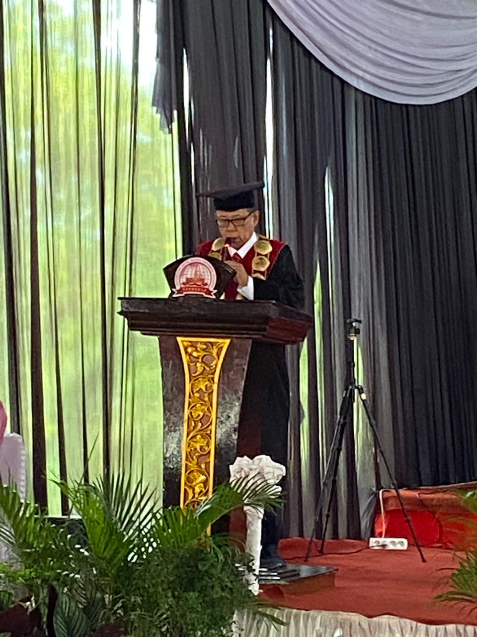 Namun, prosesi wisuda kali ini menjadi momen emosional tersendiri bagi Prof. Zulkarnain. Ia menyampaikan pamit dari jabatannya sebagai rektor setelah memimpin selama hampir lima tahun.