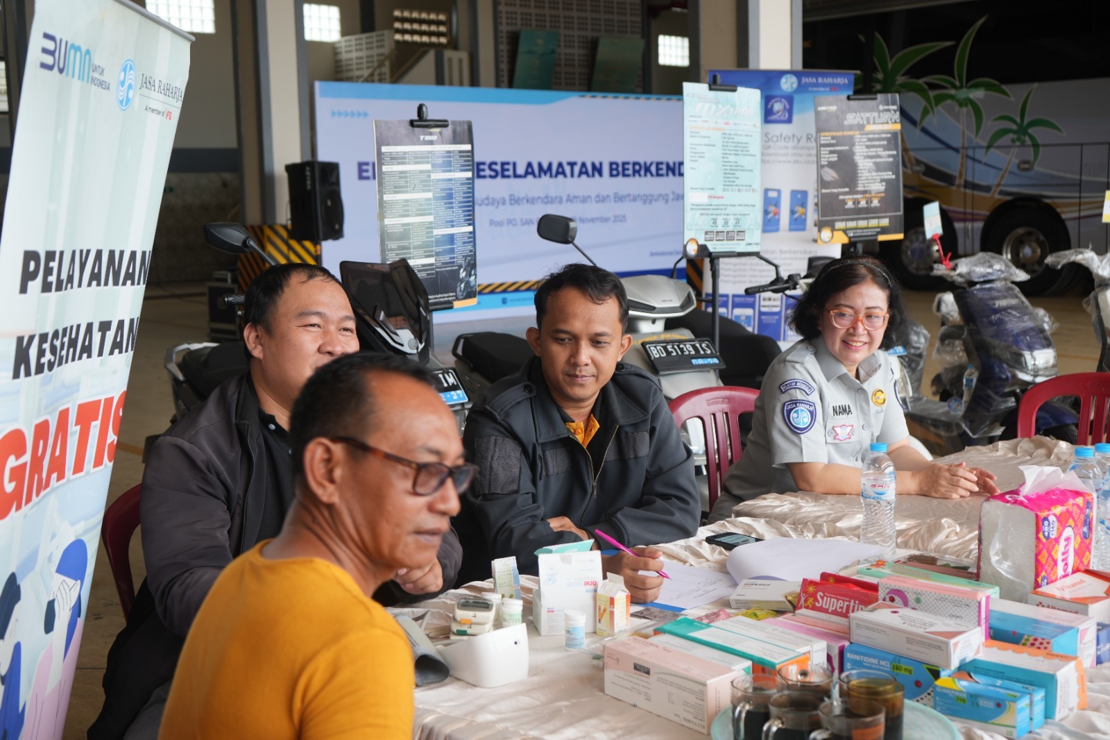 Bengkulu — PT Jasa Raharja Kantor Wilayah Bengkulu kembali melaksanakan pelayanan kesehatan gratis melalui program Mobil Unit Keselamatan Lalu Lintas (MUKL) di Pool PO SAN Bengkulu pada Selasa, 18 November 2025. Kegiatan ini digelar bersamaan dengan agenda sosialisasi edukasi keselamatan berkendara, sehingga pemeriksaan kesehatan difokuskan bagi kru bus serta peserta sosialisasi.
