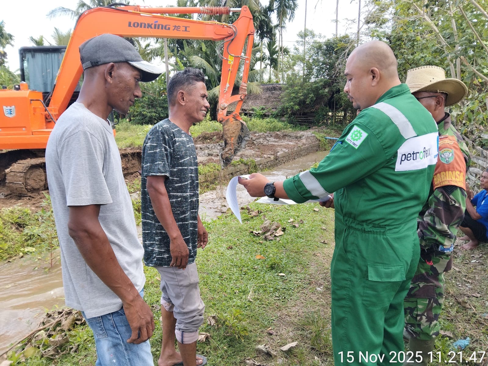 Fauzan Hazima selaku kepala humas PT. PetroFlexx Prima Daya kepada awak media menuturkan” pada hari ini kami pihak perusahaan PetroFlexx Prima Daya Dan KSO melakukan penyerahan satu unit Alat Berat/Beco sementara selama tiga hari, guna membantu warga melakukan penggalian saluran Irigasi yang tersumbat”, tuturnya.