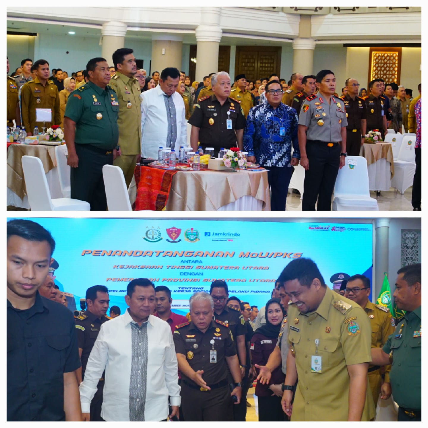 Kegiatan yang berlangsung di aula Raja Inal Siregar kantor Gubernur Provinsi Sumatera Utara Jalan Pangeran Diponegoro Medan, Selasa (18/11/2025) dihadiri Gubernur Sumut Bobby Nasution, Kajati Sumut Dr.Harli Siregar, SH.,M.Hum, Ketua DPRD Sumut Wakil Gubernur Sumut, Sekretaris Daerah Sumut, Wakapolda Sumut, Kasdam 1/BB, Danlanud Soewondo, Kabinda Sumut, Komando Daerah Angkatan Laut (Kodaeral), Para Asisten, Para Kajari, Kabag TU dan Koordinator, para Bupati/Walikota se Provinsi Sumatera Utara, pimpinan dan Jajaran Jamkrindo se-Sumatera Utara serta para Kepala OPD Provinsi Sumatera Utara.