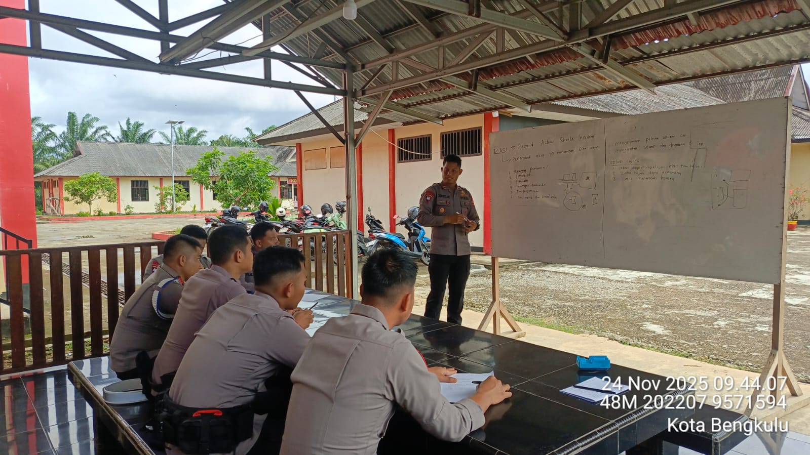 Bengkulu — Satbrimobda Bengkulu melaksanakan latihan materi Respon Active Shooter Incident (RASI) di Markas Kompi 1 Batalyon B Pelopor, Senin (24/11/2025). Kegiatan dipimpin langsung oleh Danki 1 Batalyon B Pelopor, Ipda Crhistian A. Matani, S.Tr.K.