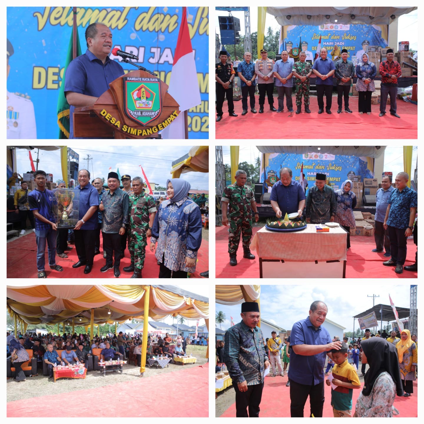 Dalam sambutannya, Bupati Asahan mengajak masyarakat untuk terus menjaga nilai kebersamaan, gotong royong, serta keikhlasan sebagai kekuatan utama dalam membangun desa. Ia mengapresiasi capaian Desa Simpang Empat di berbagai sektor—mulai dari infrastruktur, pelayanan publik, hingga pemberdayaan masyarakat—dan menegaskan bahwa keberhasilan tersebut merupakan hasil kolaborasi Kepala Desa, perangkat desa, lembaga desa, tokoh masyarakat, dan seluruh warga.