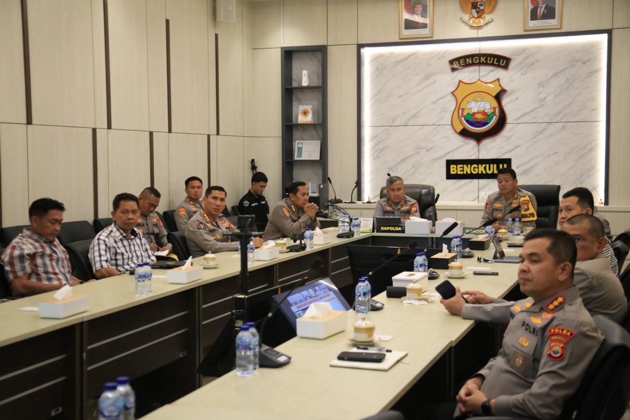 Bengkulu – Senin (1/12/2025), Kapolda Bengkulu Irjen Pol Mardiyono, S.I.K., M.Si., bersama para PJU Polda Bengkulu mengikuti Rapat Internal terkait pembangunan jembatan yang dipimpin langsung oleh Bapak Kapolri secara daring dari Ruang Rapat Kapolda.
