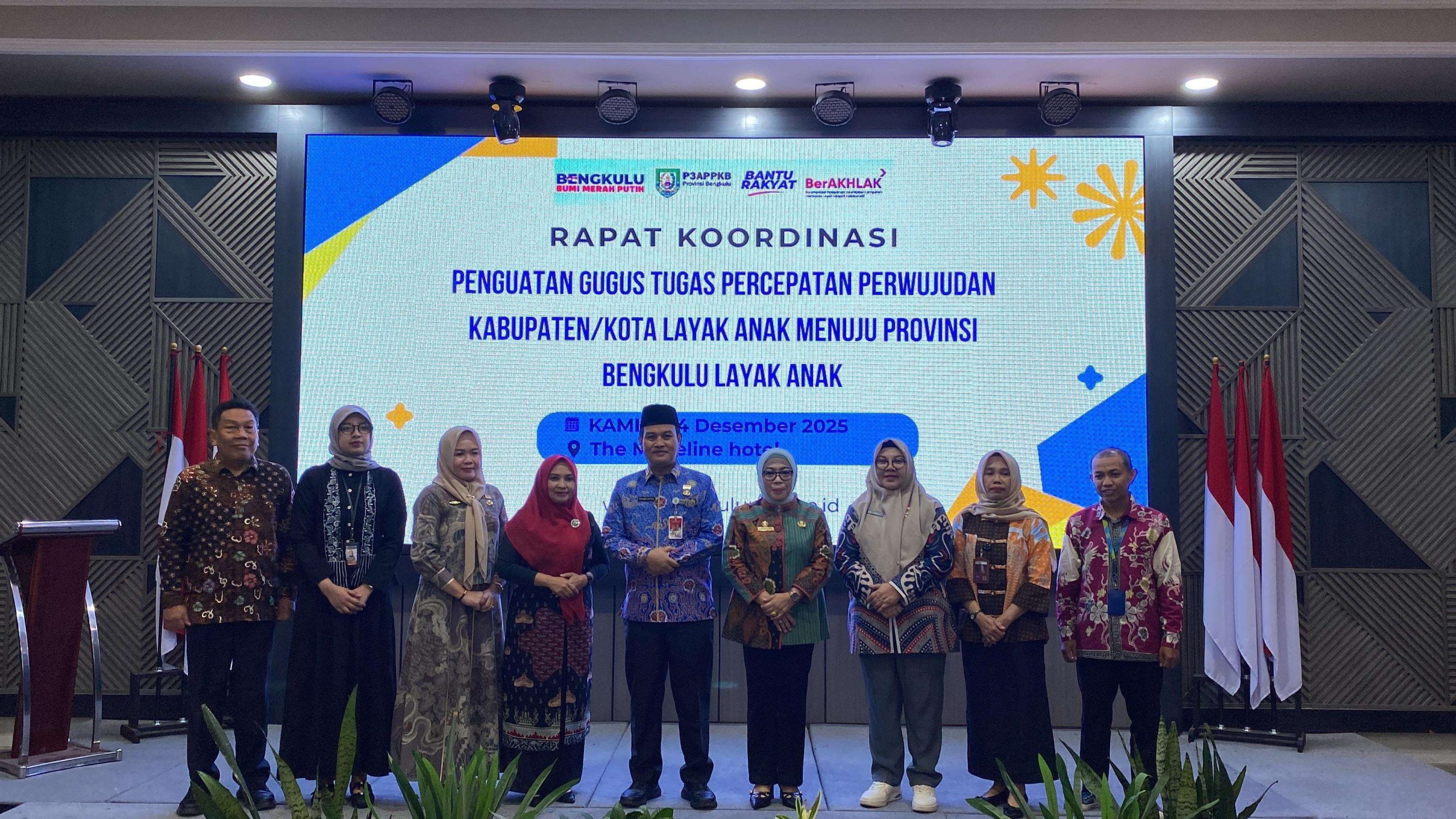 Bengkulu, Tintabangsa.com- Pemerintah Provinsi Bengkulu mengadakan rapat koordinasi pada 4 November 2025 untuk memperkuat gugus tugas dalam mempercepat pembentukan kabupaten/kota layak anak. Dalam kesempatan tersebut, seluruh kabupaten/kota diminta menindaklanjuti arahan provinsi terkait pemenuhan indikator yang sesuai dengan kriteria layak anak.