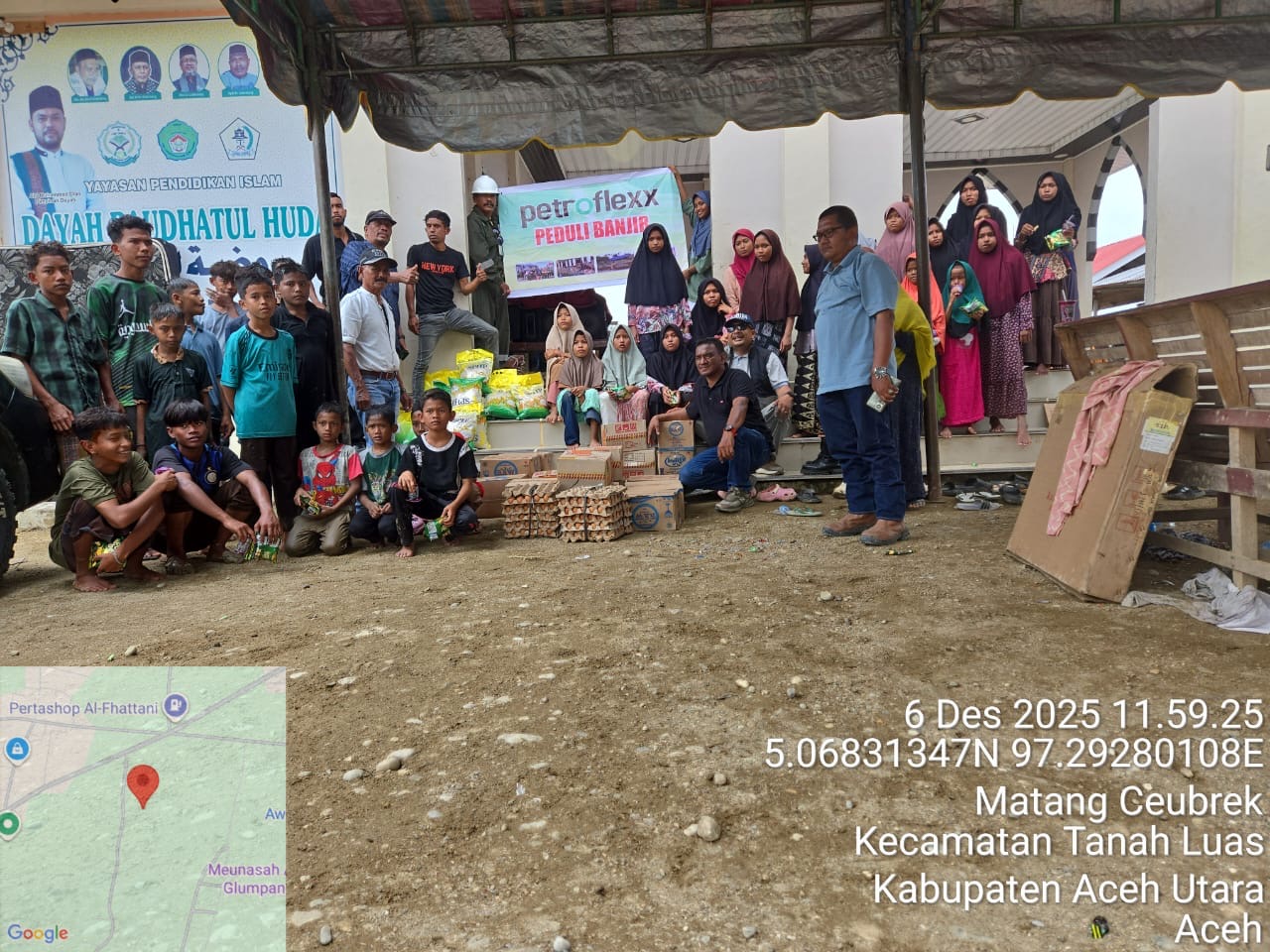 Aceh Utara, tintabangsa.com- Kepala humas PT. PetroFlexx Prima Daya Fauzan Hazima merasa prihatin terhadap kondisi para korban banjir, tidak tanggung-tanggung beliau beserta tim terjun langsung ke titik banjir seputaran wilayah kerja perusahaan tepatnya Kecamatan Matangkuli dan Tanah Luas, Kebupaten Aceh Utara, Minggu 07/12/2025.