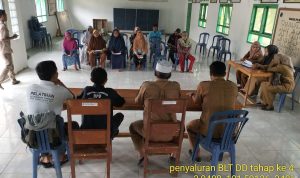 Kegiatan penyaluran BLT DD kepada 29 KPM dilaksanakan di aula Balai Desa dipimpin langsung oleh Kepala Desa didampingi seluruh perangkat desa dan disaksikan oleh Ketua dan Anggota BPD Marga Mulia.