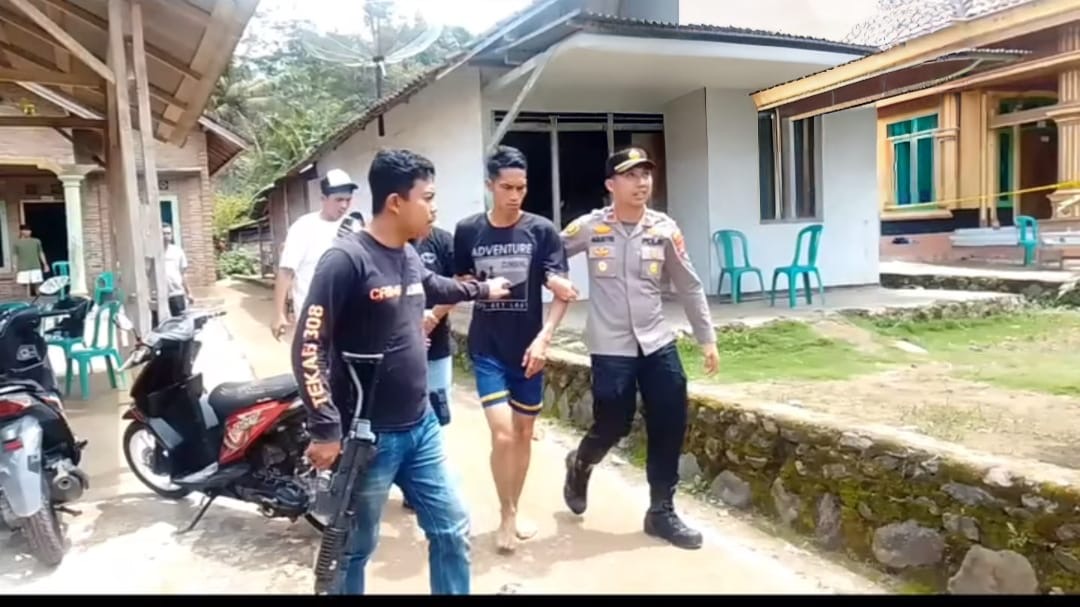 tetangga korban dan kini telah dibawa polisi ke Polres Tanggamus ,ujar warga