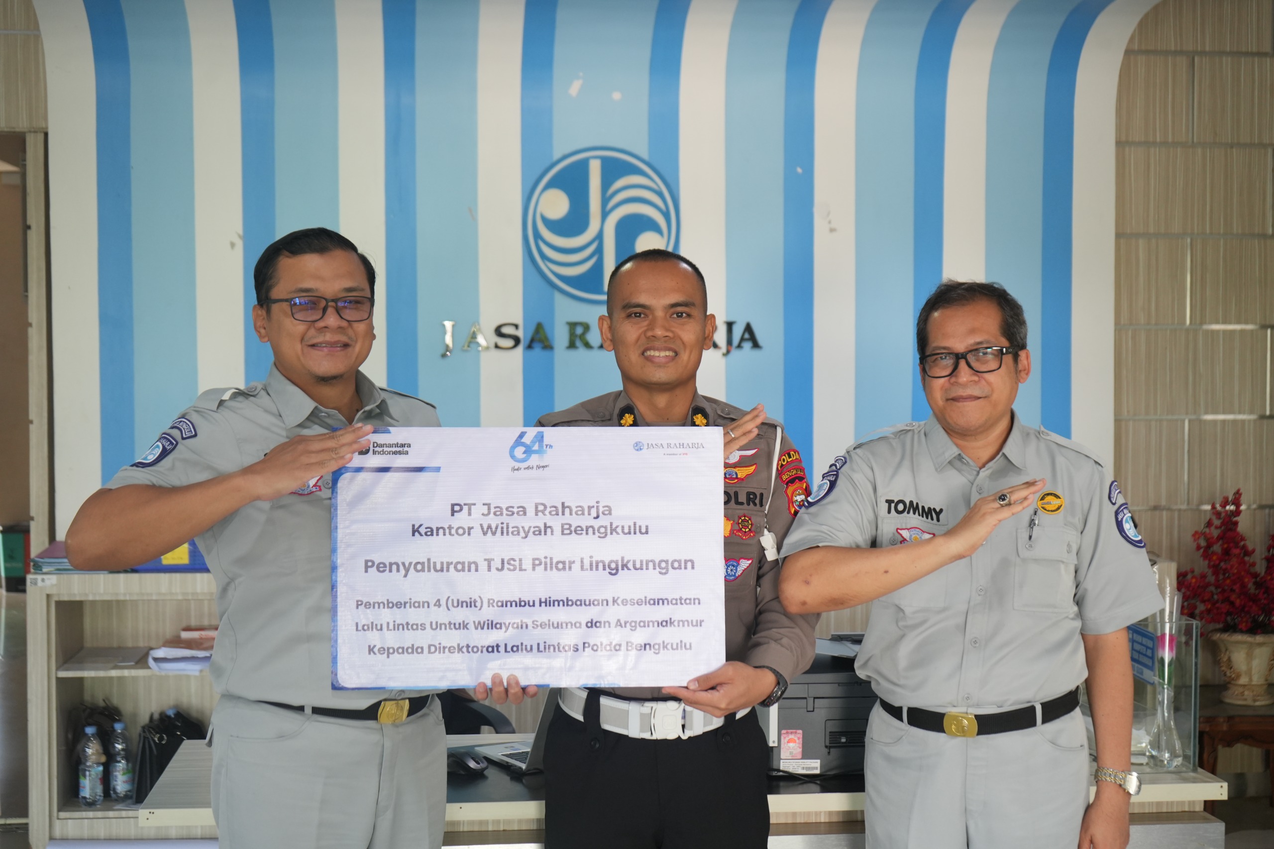 Kegiatan tersebut berlangsung di Kantor Wilayah Jasa Raharja Bengkulu dan dihadiri oleh Soeko Agung Prasetyo, selaku Kepala Unit Operasional dan Humas Jasa Raharja Kanwil Bengkulu, didampingi Tommy Purnomo, Kepala Unit Keuangan, Akuntansi, dan ESG. Penyerahan rambu diterima oleh Kompol Kadek Suwantoro, S.H., S.I.K., M.A.P, selaku Kasubdit Kamsel Ditlantas Polda Bengkulu.