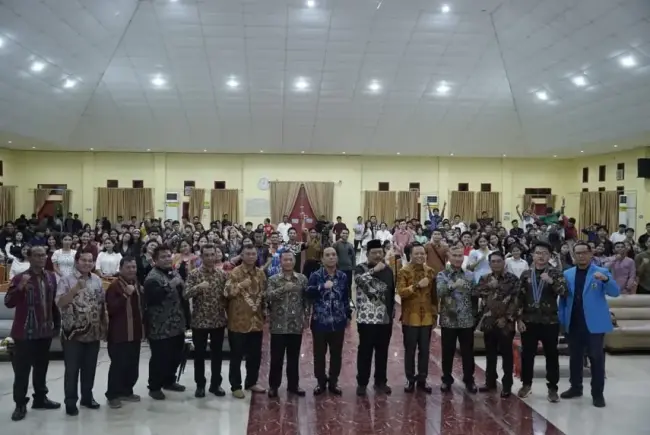 Bengkulu, Tintabangsa.com. Wakil Gubernur Bengkulu, Mian, turut menghadiri acara Ibadah dan Perayaan Natal bagi Pemuda serta Pelajar se-Provinsi Bengkulu yang diadakan di Gedung Serbaguna HKBP Lingkar Barat. Gelaran tersebut berlangsung dengan penuh khidmat dan nuansa kebersamaan, dihadiri oleh jajaran Forum Koordinasi Pimpinan Daerah (Forkopimda), tokoh agama, dan ratusan pemuda serta pelajar dari berbagai wilayah kabupaten dan kota di Bengkulu.