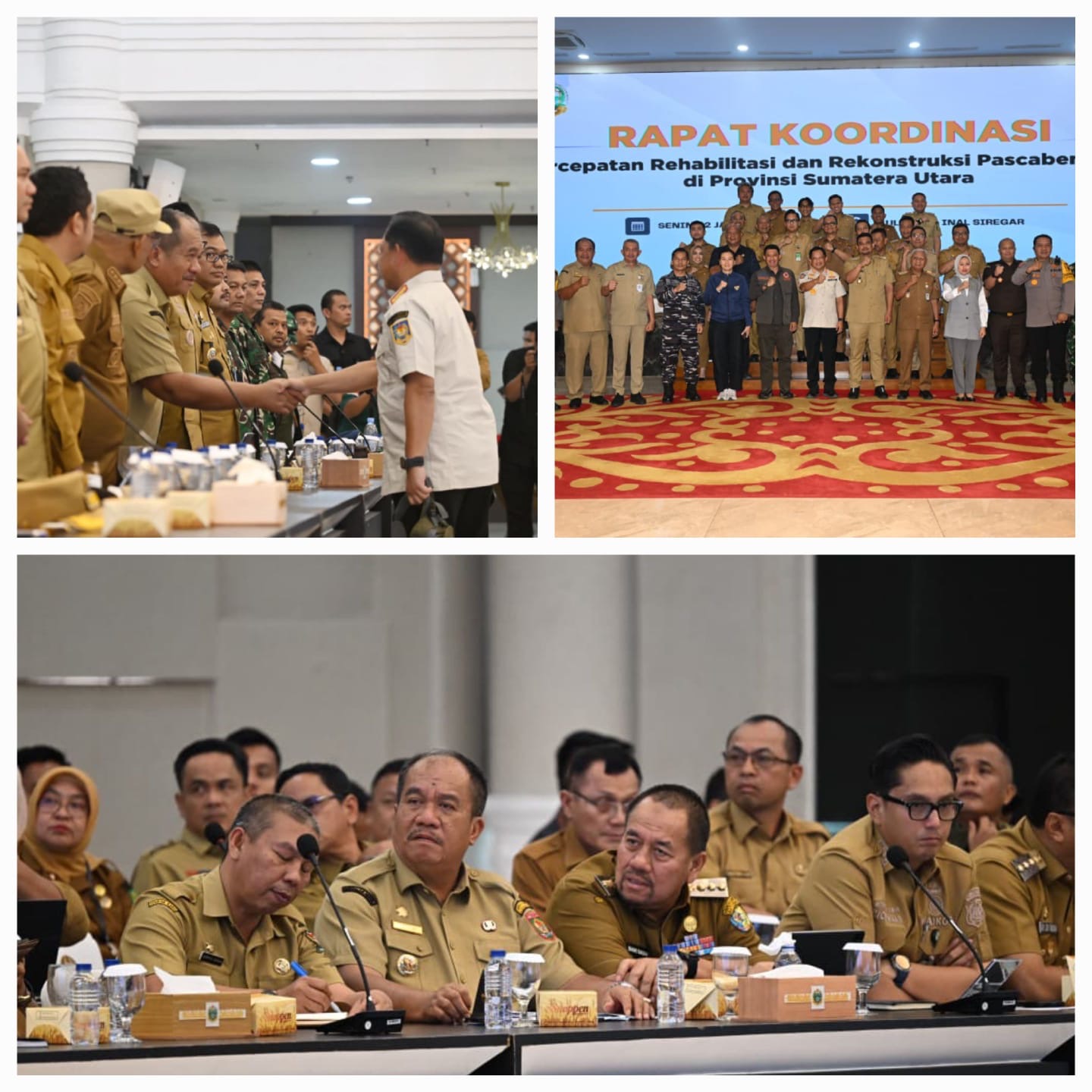 Rapat koordinasi dipimpin oleh Menteri Dalam Negeri Republik Indonesia selaku Ketua Satuan Tugas Percepatan Rehabilitasi dan Rekonstruksi Pascabencana di Aceh, Sumatera Utara, dan Sumatera Barat, Prof. Tito Karnavian, M.A., Ph.D. Kegiatan ini turut dihadiri Kepala Badan Nasional Penanggulangan Bencana Letjen TNI Suharyanto, Gubernur Sumatera Utara Muhammad Bobby Afif Nasution, Wakil Gubernur Sumatera Utara H. Surya, B.Sc., unsur Forkopimda Provinsi Sumatera Utara, pimpinan kementerian dan lembaga terkait, serta para bupati dan wali kota se-Sumatera Utara sebagai bagian dari penguatan sinergi antara pemerintah pusat dan daerah.