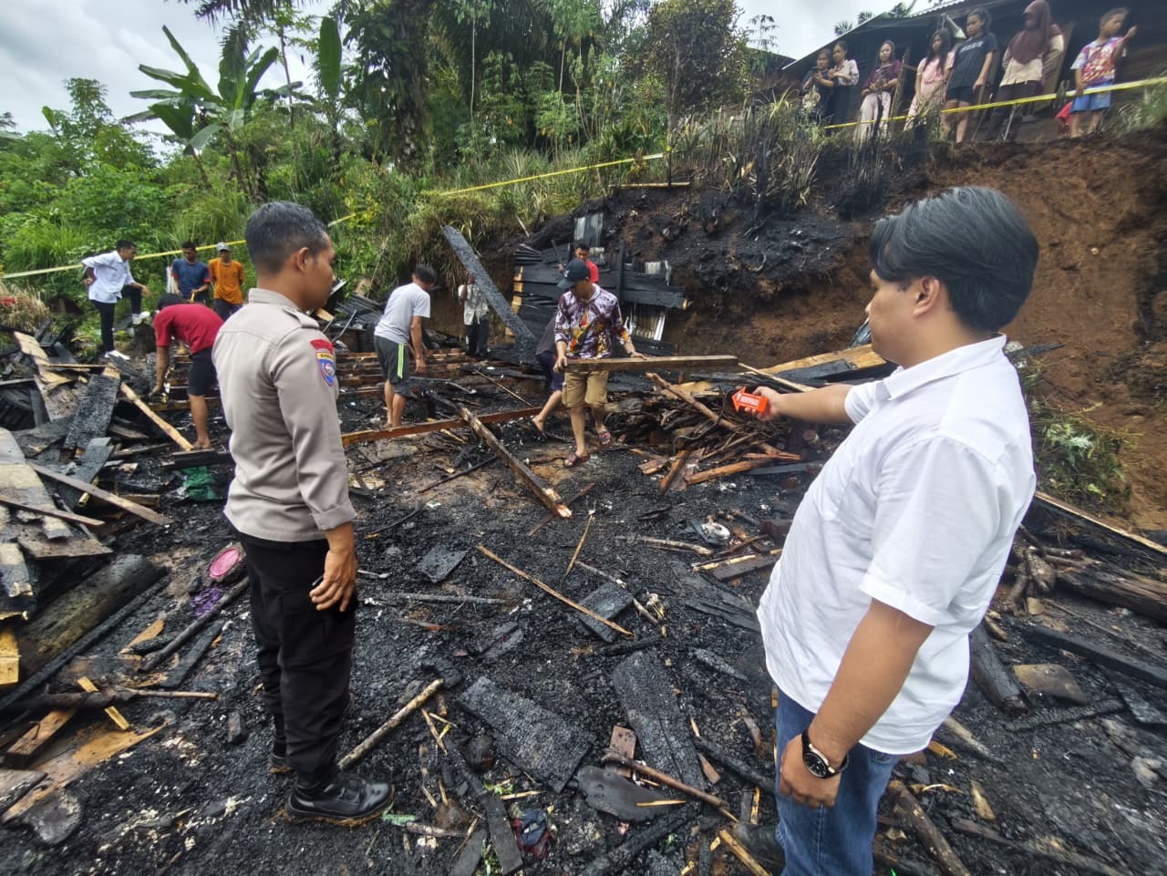 Petugas dari Unit Identifikasi, Piket Satreskrim Polres Lebong, dan personel Polsek Lebong Atas segera tiba di lokasi untuk melakukan pengamanan tempat kejadian perkara (TKP), pengumpulan bahan keterangan, serta berkoordinasi dengan pihak Pemadam Kebakaran dan PLN.