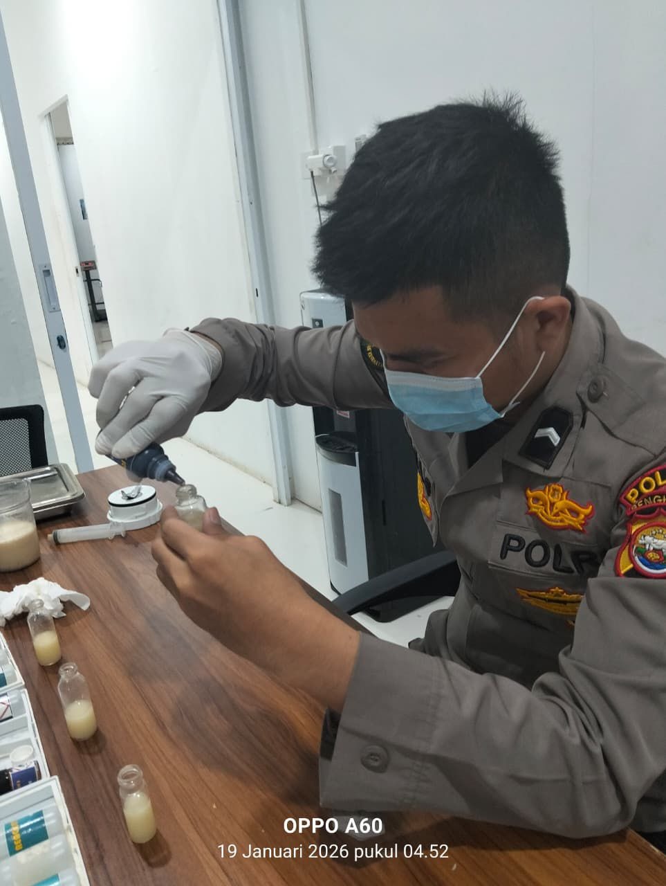 Kegiatan pemeriksaan ini dilaksanakan oleh personel Tim FS MBG yang terdiri dari Brigpol Habibie, S.Kep dan Bripda Reza, Str.A.K. Pemeriksaan dilakukan terhadap seluruh bahan makanan dan menu yang akan disajikan kepada siswa penerima manfaat Program Makan Bergizi Gratis (MBG).