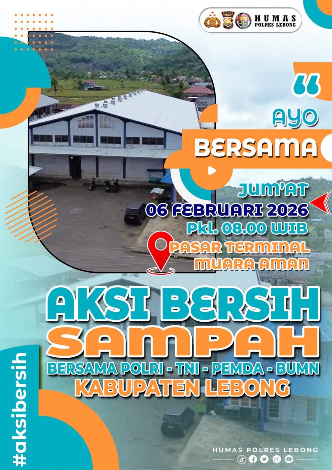 LEBONG – Polres Lebong akan menggelar kegiatan Aksi Bersih Sampah bersama TNI, Pemerintah Daerah, BUMN, serta unsur masyarakat pada Jumat, 6 Februari 2026. Kegiatan tersebut akan dilaksanakan di kawasan Pasar Terminal Muara Aman dan dipimpin langsung oleh Kapolres Lebong AKBP Agoeng Ramadhani, S.H., S.I.K., bersama unsur Forkopimda Kabupaten Lebong.