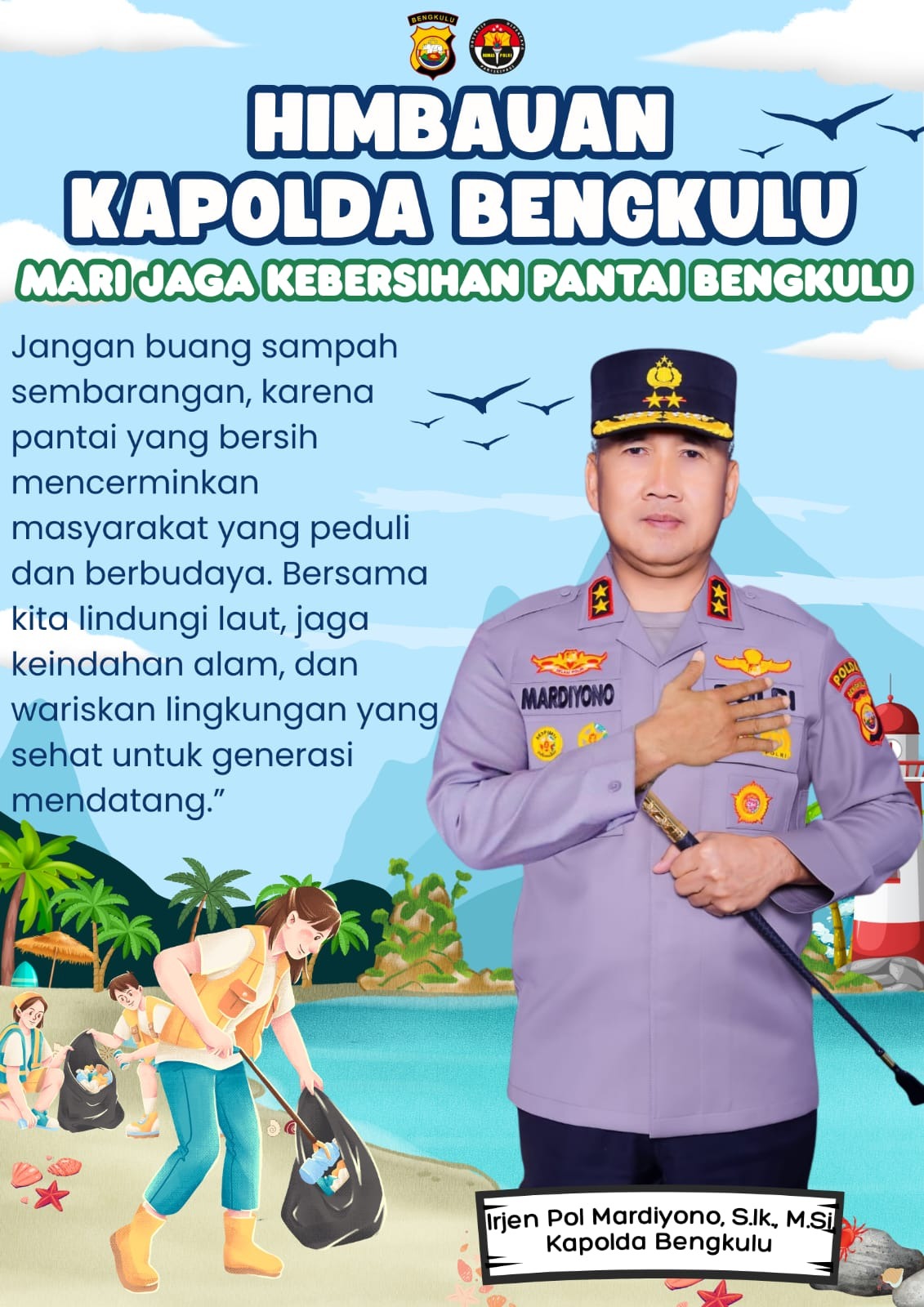 “Pantai yang bersih adalah tanggung jawab kita bersama. Mari lindungi laut, jaga keindahan alam, serta wariskan lingkungan yang sehat bagi generasi mendatang,” ujar Kapolda Bengkulu.