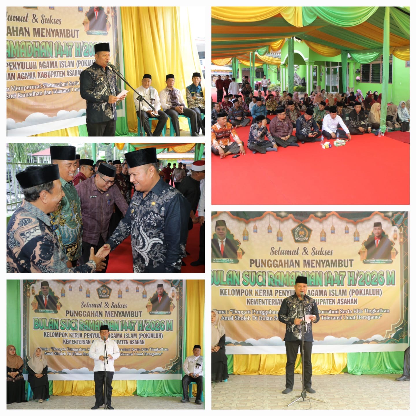 Asahan, tintabangsa.com– Bupati Asahan yang di Wakili oleh Wakil Bupati Asahan Rianto, S.H., M.A.P. Mengajak masyarakat untuk meningkatkan keimanan dan memperkuat ukhuwah Islamiyah dalam rangka menyambut Bulan Suci Ramadhan 1447 H / 2026 M. Ajakan tersebut disampaikannya saat menghadiri acara Punggahan dalam rangka menyambut Bulan Suci Ramadhan yang digelar di halaman Kantor Kementerian Agama Kabupaten Asahan, Kamis (12/2/2026).