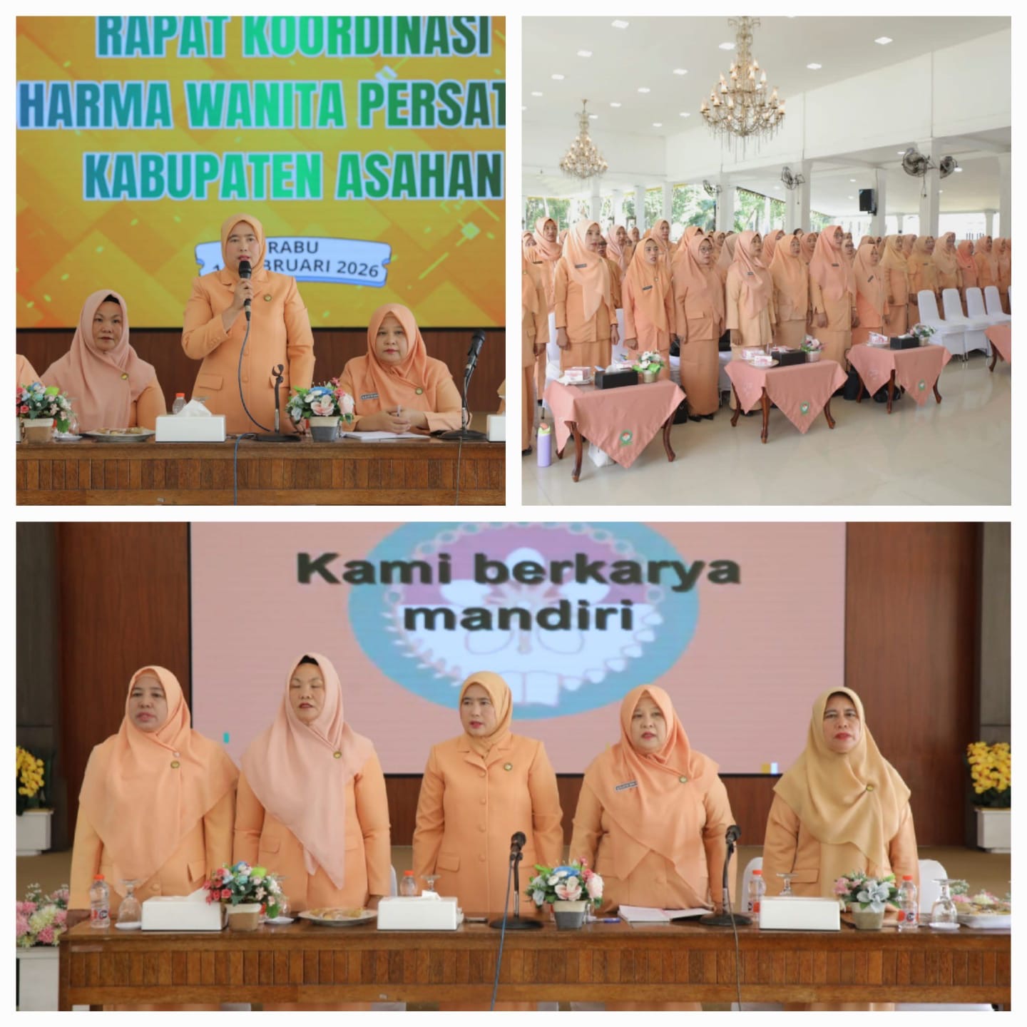 Persatuan (DWP) Kabupaten Asahan menggelar Rapat Koordinasi (Rakor) di Pendopo Rumah Dinas Bupati Asahan dalam rangka memperkuat koordinasi antar unsur pengurus dan menyusun arah program kerja tahun 2026. Kegiatan ini dihadiri oleh Penasehat DWP Kabupaten Asahan Ny. Yusnila Indriati Taufik, Ketua DWP Kab. Asahan Ny.Lily Evi Zainal Aripin, pengurus DWP unit dari seluruh Organisasi Perangkat Daerah (OPD), serta perwakilan DWP kecamatan se-Kabupaten Asahan.