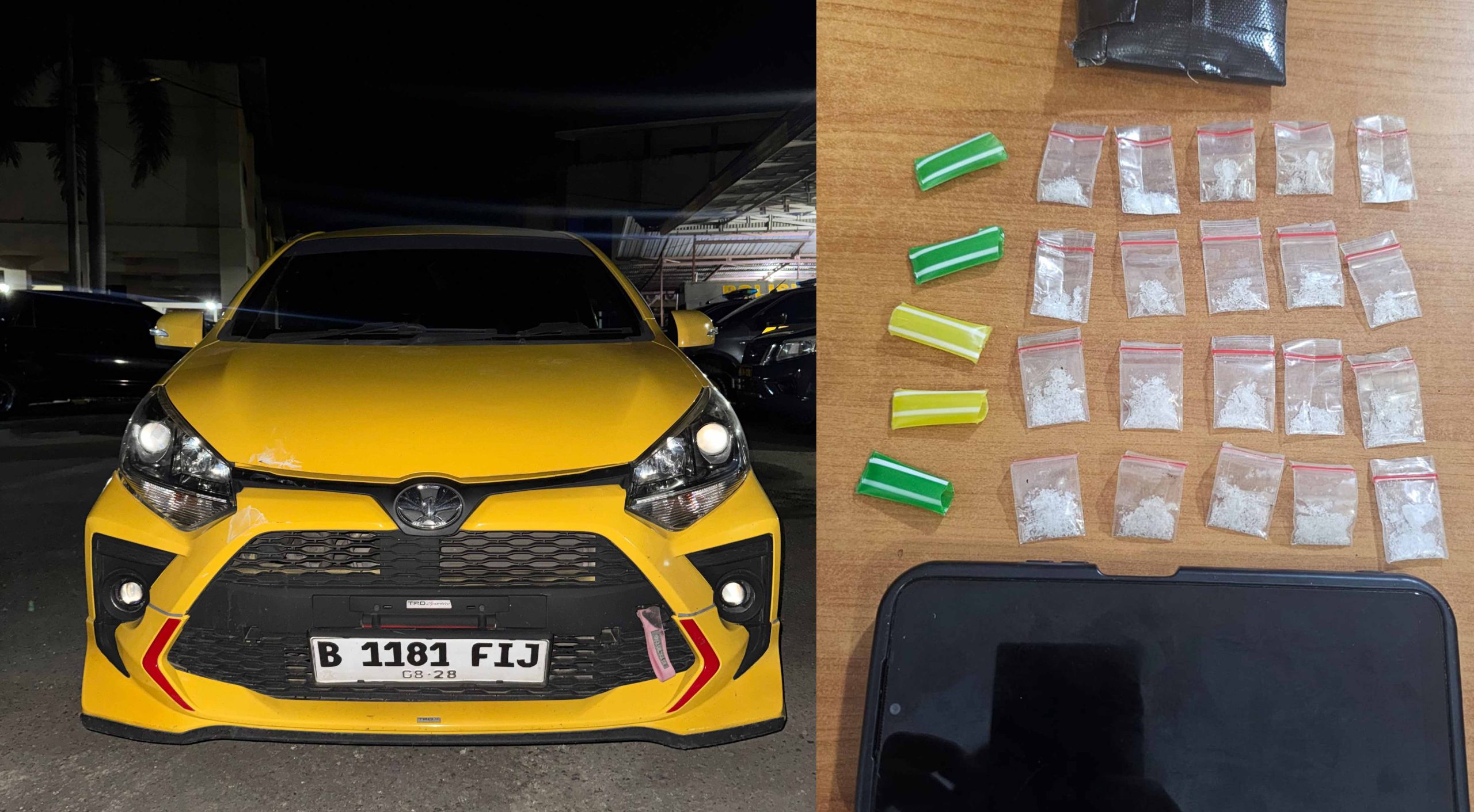 Total barang bukti yang berhasil diamankan sebanyak 20 paket sabu, satu unit handphone merk Oppo warna hitam, serta satu unit mobil Toyota Agya warna kuning yang diduga digunakan untuk mendukung aktivitas peredaran narkotika tersebut.